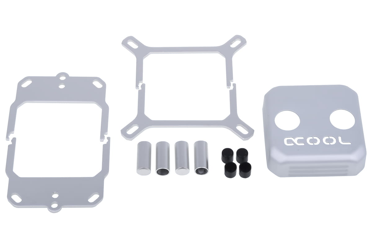In der Packung liegt neben dem silbernen aluminium Deckel auch die entsprechenden Intel und AMD Halterahmen sowie Schraubenkappen bei. Natürlich alles in derselben Farbe wie auch der Deckel.