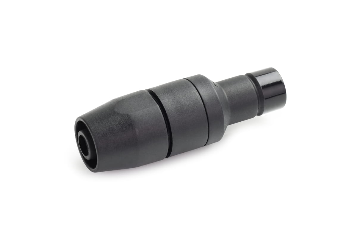 Diese Male-Version verfügt über einen PushIn-Anschluss für TPV-Schläuche und ist für den Einsatz in Kombination mit einer Female-Variante ausgelegt. Sie ermöglicht eine sichere Verbindung, die auch bei häufigem Kuppeln zuverlässig bleibt. Die besonders hohe Zugfestigkeit wurde durch einen Sperrkranz erreicht, der im Anschlussbereich des TPV Schlauches untergebracht wurde. Wenn der Schlauch montiert wird, greift dieser Sperrkranz in den Schlauch und hält ihn fest. Dadurch wird das Abziehen des Schlauches unter normalen Umständen unmöglich.