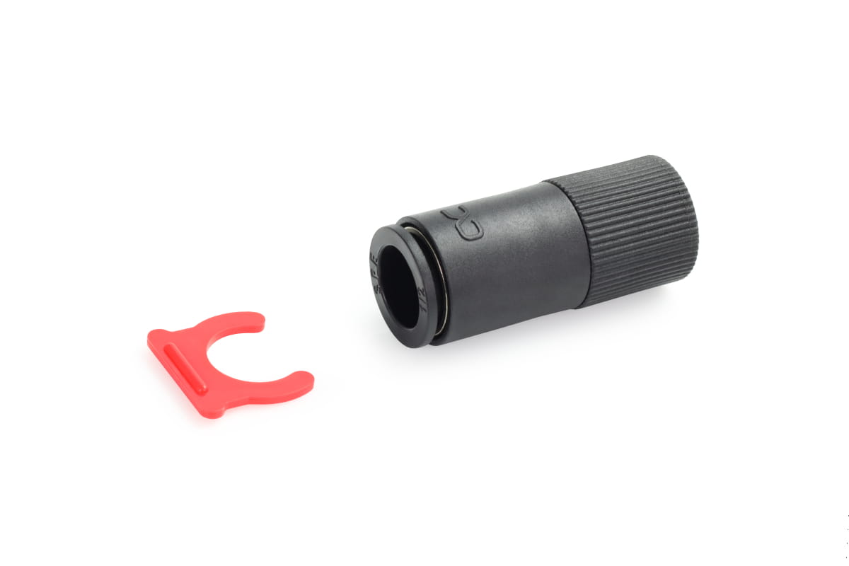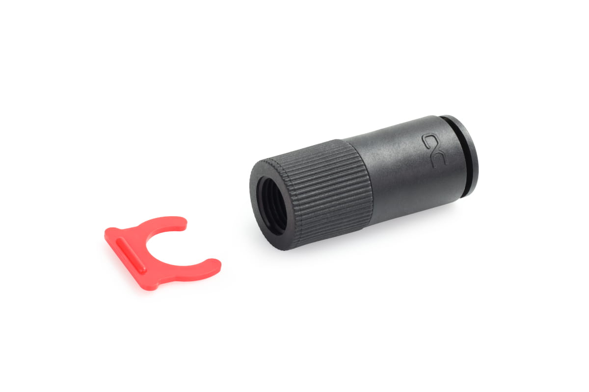 Mit G1/4 Innengewinde und Female PushIn-Anschluss ist diese Variante besonders vielseitig einsetzbar. Sie stellt das passende Gegenstück zur Male-Version dar und ermöglicht eine stabile Verbindung in unterschiedlichsten Anwendungen.