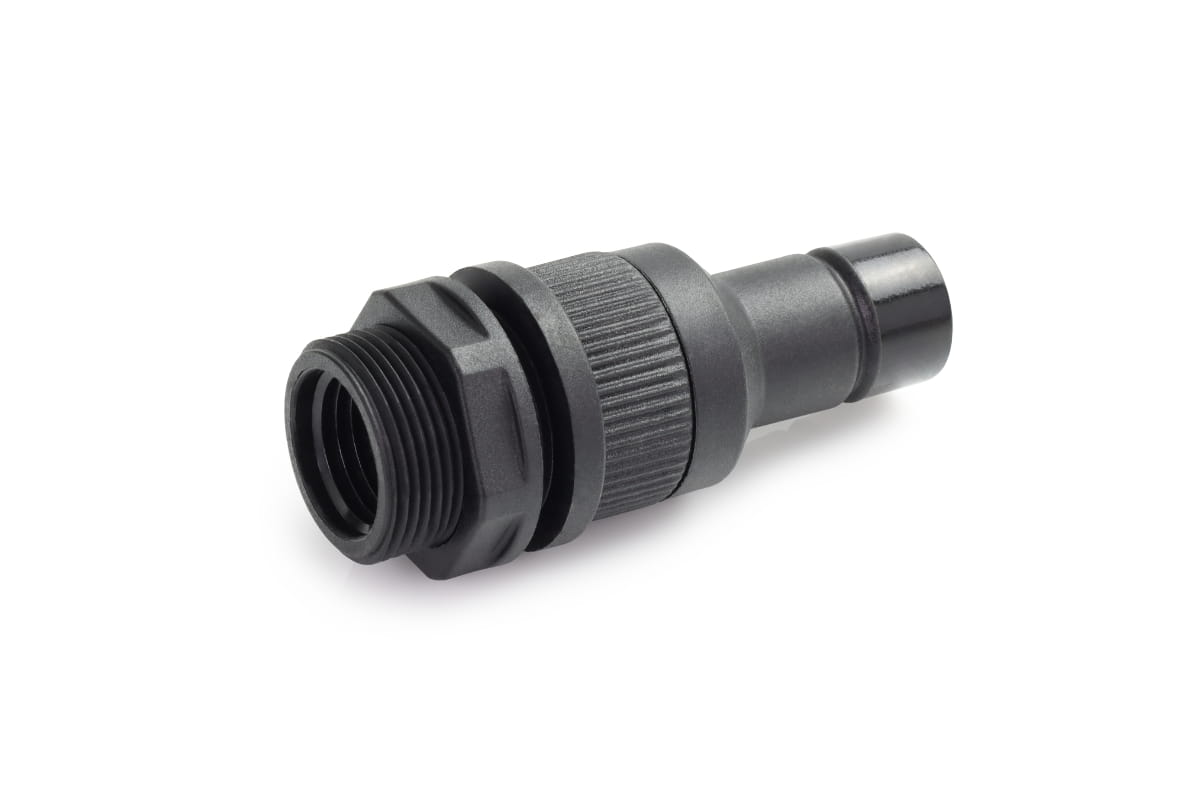 Die Schottverschraubung mit G1/4 Innengewinde und Male PushIn-Anschluss ist für die Montage durch Gehäuse- oder Panelwände vorgesehen. Dadurch lassen sich Durchführungen realisieren, die eine saubere und stabile Verlegung der Schläuche ermöglichen.