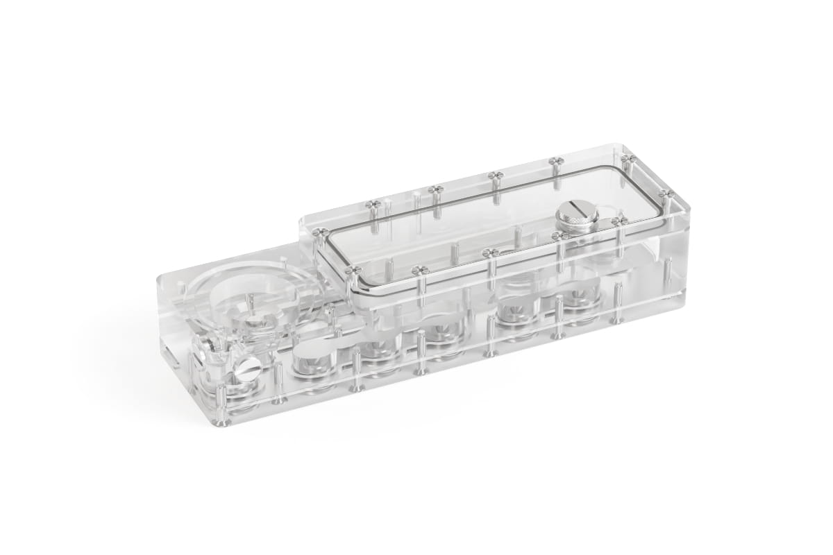 Dank einer überarbeiteten Pumpenhalterung lässt sich bei dieser Distro Plate wahlweise eine VPP/D5- oder DDC-Pumpe verbauen – für maximale Flexibilität im Custom-Loop.