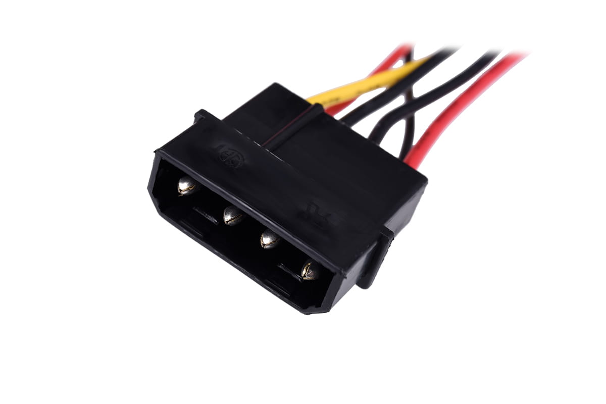 For connecting a fan with a 3-pin Molex connector (CPU cooler, case fan, etc.) to a power supply connector (4-pin). The adapter allows the fan to operate at 7 volts instead of 12 volts, which reduces noise. Please note that this reduces the rotation speed of the fan and therefore the air flow rate.
