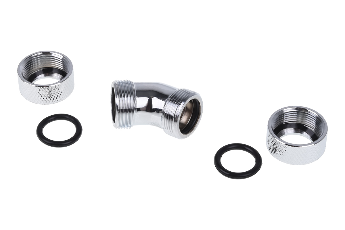 - 1x Alphacool Eiszapfen 13mm HardTube screw-on nozzle 45° L-connector acrylic brass tubes - Chrome