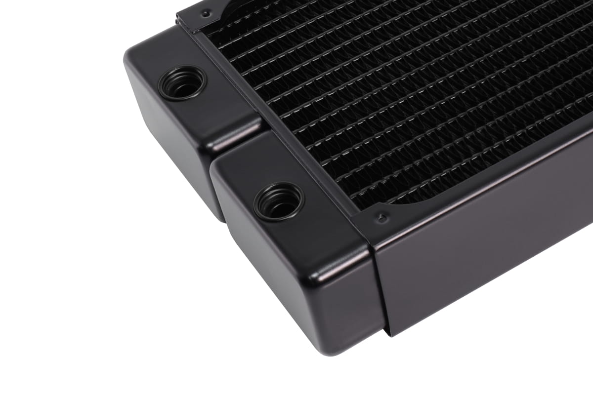 Alphacool also has been able to combine the best quality with the most beautiful design for the NexXxos V.2 radiators. The end chambers have been manufactured in a noble, modern design. In addition, the NexXxos ST30 V.2 radiators now also have a G1/4“; connection at the opposite end chamber than the inlet/outlet for easy bleeding of the loop. Mount your Alphacool NexXxos radiator in any position, the possibilities are unlimited.