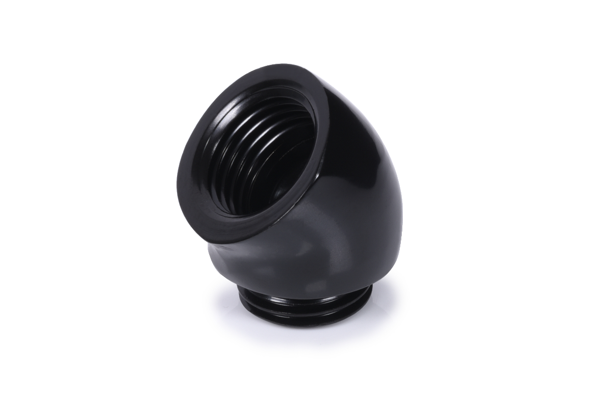 Dieser um 45° gewinkelte Adapter ist mit einem G1/4" Innengewinde sowie einem G1/4" Außengewinde ausgestattet. Verwendung findet dieser um 45° gewinkelte Anschluss in Wasserkreisläufen, wo wenig Platz für die Verschlauchung vorhanden ist und eine spezielle Lösung benötigt wird.
