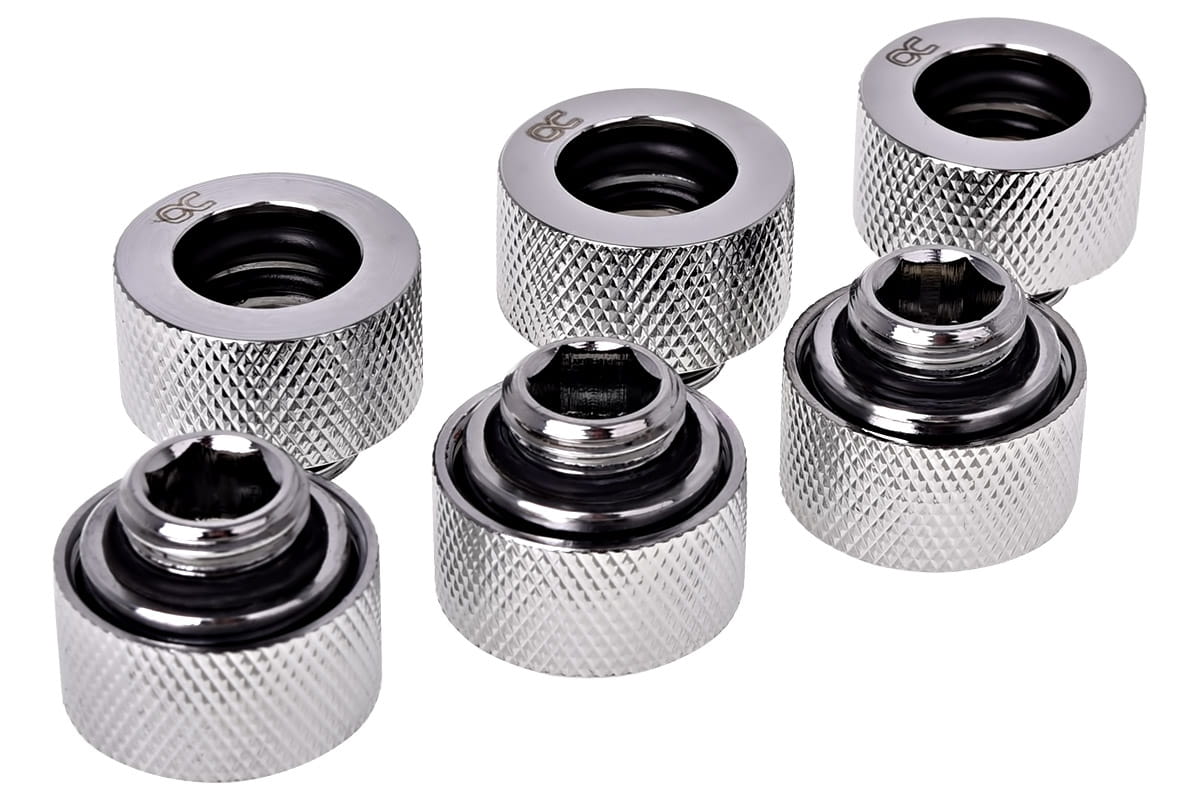 - 1 x Alphacool HT 13mm HardTube Anschraubtülle G1/4 für Acryl- Messingrohre - gerändelt - Chrome Sixpack
