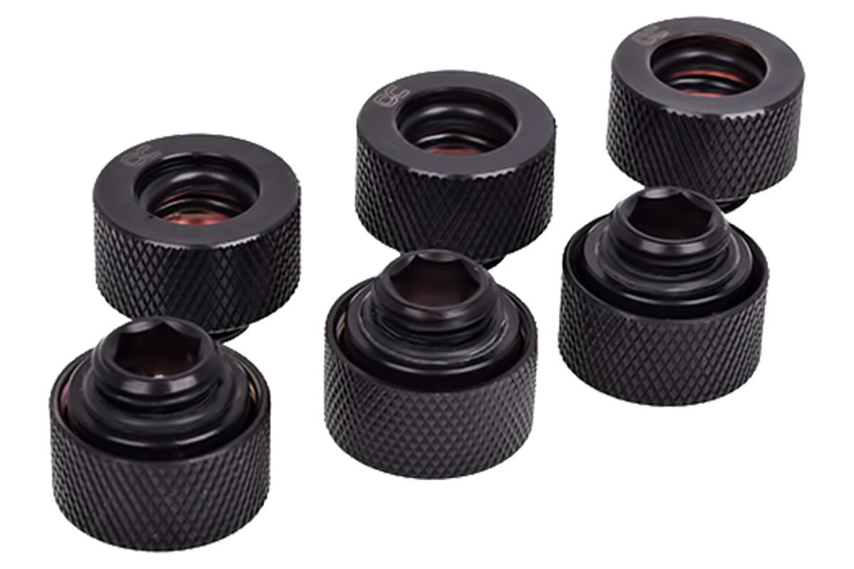 - 1 x Alphacool HT 13mm HardTube Anschraubtülle G1/4 für Acryl- Messingrohre - gerändelt - Deep Black Sixpack