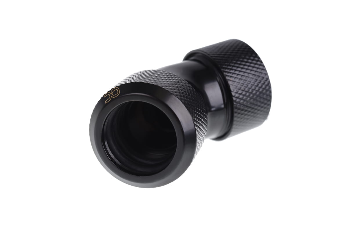 - 1x Alphacool Eiszapfen 16mm HardTube Anschraubtülle 45° L-Verbinder Acryl- Messingrohre - Deep Black