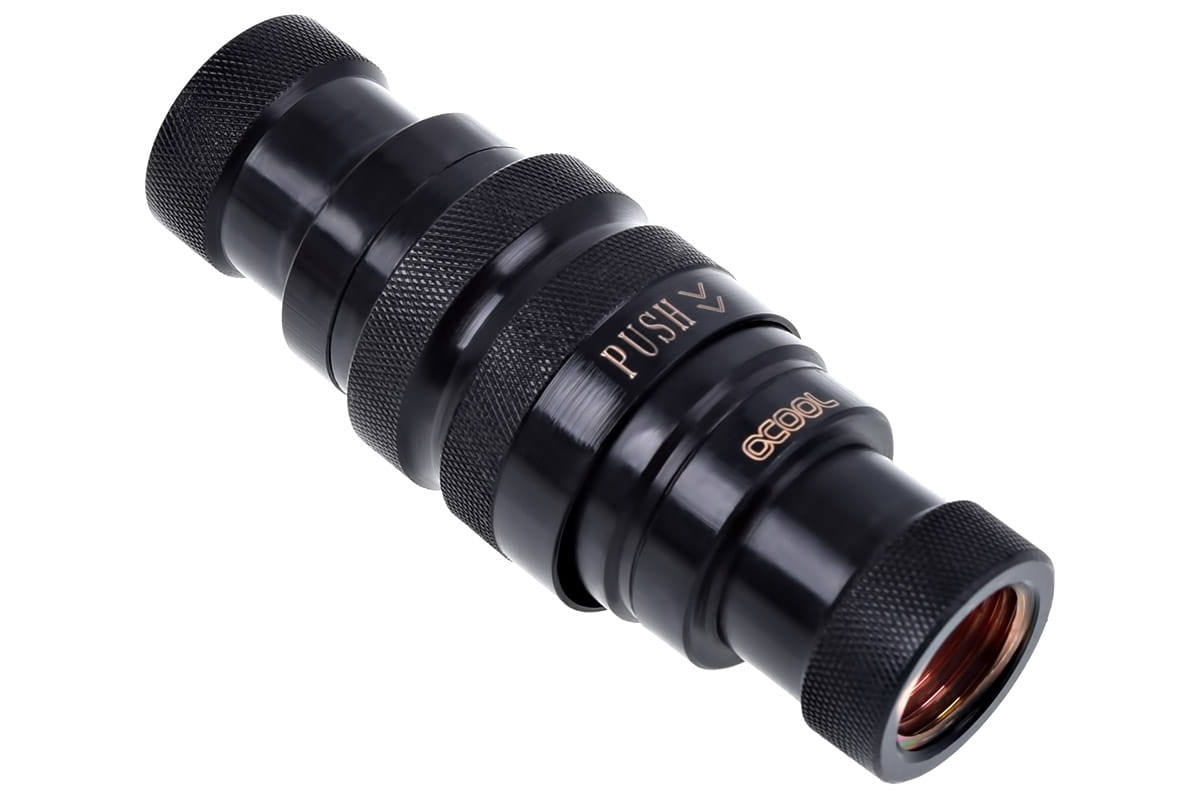 Alphacools Schnellkupplungen sind in zwei Ausführungen erhältlich. In tiefem Schwarz und komplett verchromt fügen diese sich jedem System nahtlos an.