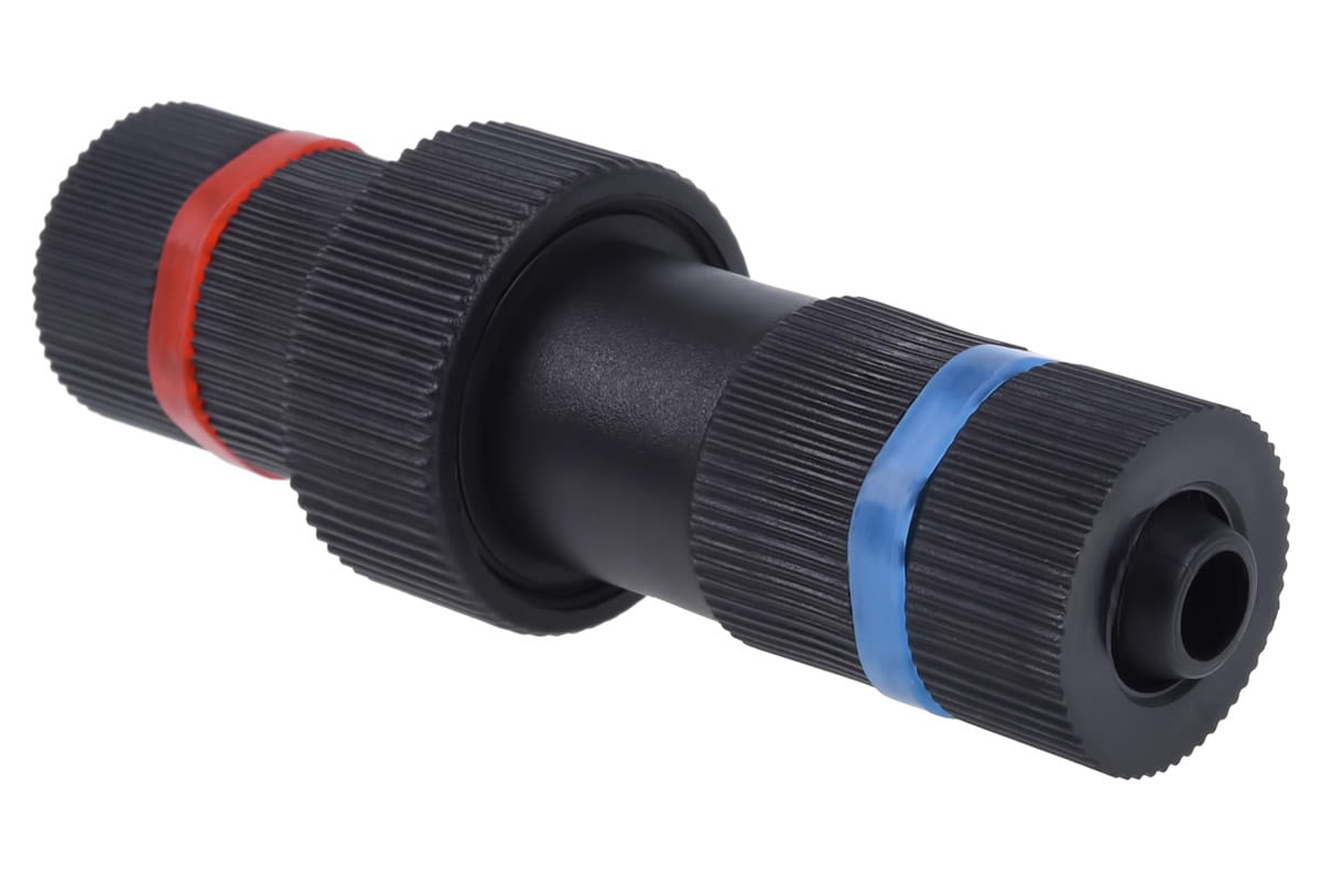 Bitte darauf achten, dass IN und OUT nicht vertauscht werden. Bei der Eisbaer ist der „Auslass“ mit „rot“ gekennzeichnet der „Einlass“ mit „blau“. Bei der anzuschließenden Komponente ist dieses genau anders herum. Die Kupplung mit der „blauen“ Kennzeichnung markiert hier den „Auslass“ und die Kupplung mit der „roten“ Markierung den „Einlass“. Dieser Sachverhalt ist wichtig, da bei den meisten Kühlern die Flussrichtung ausschlaggebend für eine optimale Kühlleistung ist.