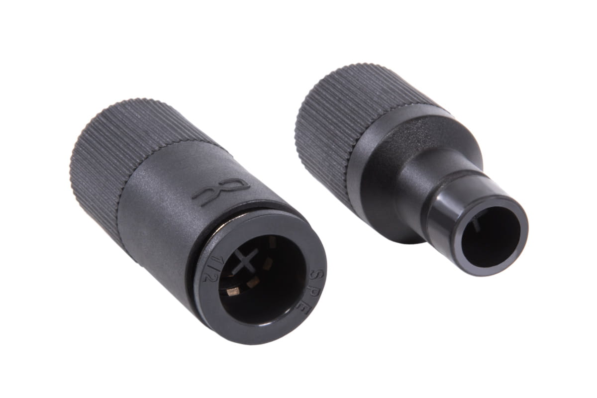 Statt wie üblich die Anschlüsse aus Messing zu gestalten, wurden diese speziell für die Enterprise Solutions Produktreihe aus Nylon gefertigt. In wassergekühlten Servern und Workstations müssen die Komponenten natürlich leicht und schnell austauschbar sein. Daher werden alle Komponenten mit Schnellverschlüssen bestückt. Aufgrund der hohen Packdichte in modernen Servern ist der Schnellverschluss aus hochstabilem Nylon gefertigt. Sie sind also nicht leitend und können keinerlei Kurzschlüsse verursachen. Nylon ist zudem ein ultra leichtes Material, was die Verwendung sehr erleichtert.