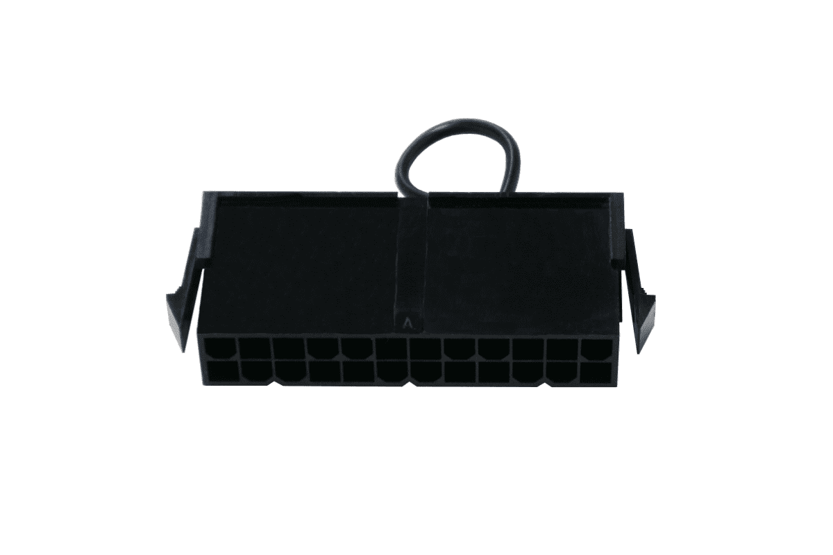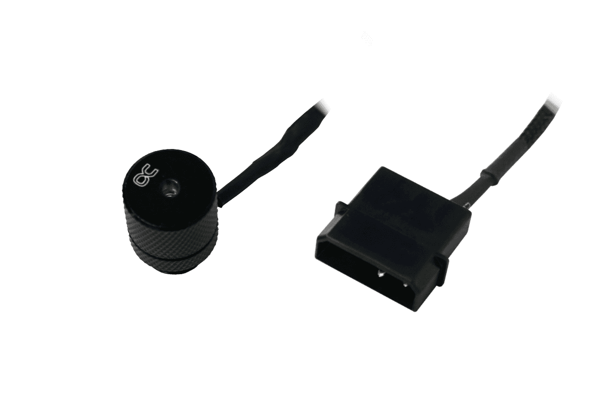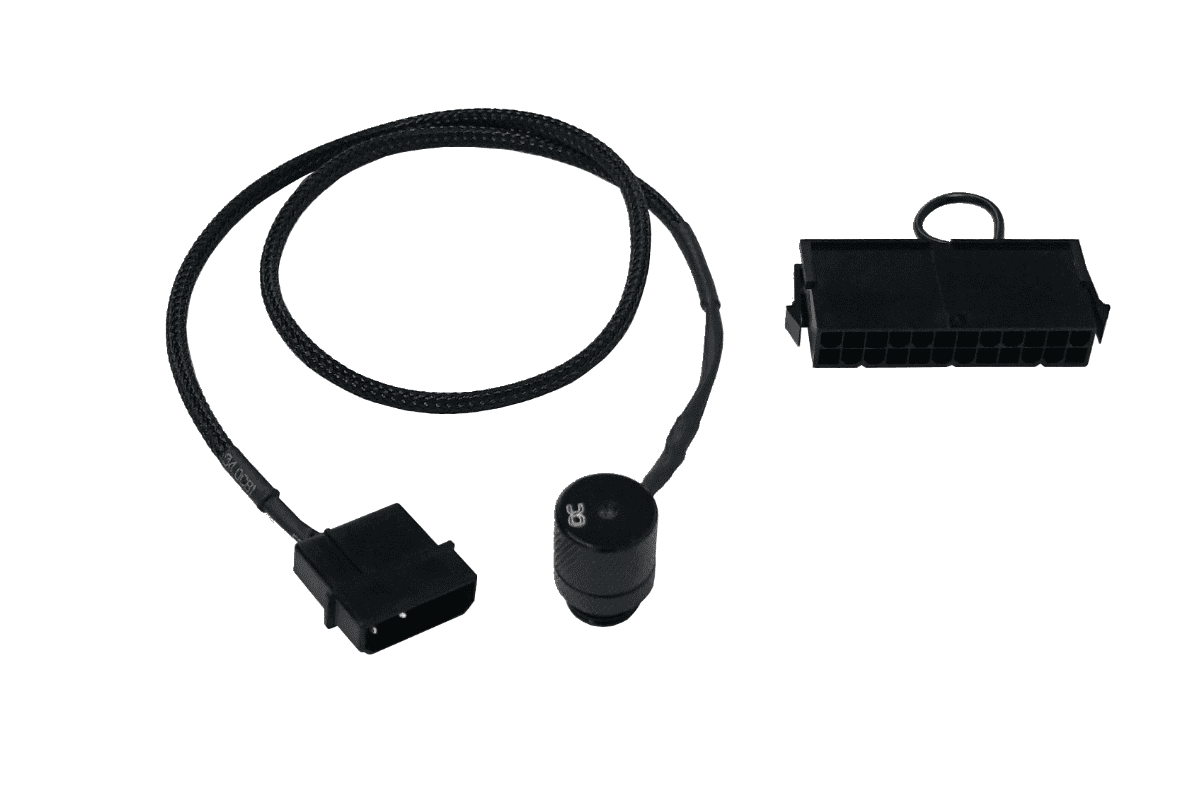 Schließe dein Alphacool Eiszapfen Laserfitting über den 4-Pin-Molex-Anschluss direkt an das Netzteil an. Um das Netzteil ohne PC zu starten, legt Alphacool dir ein 24-Pin-ATX-Überbrückungsstecker bei.