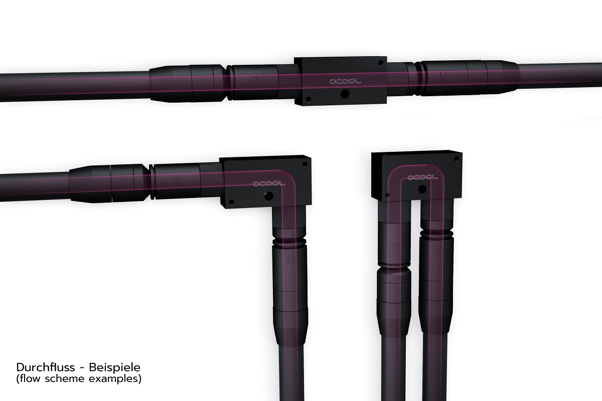 Die ES Distro Plate C1 besitzt insgesamt 4 Anschlussmöglichkeiten im Format G1/4 mit 5mm tiefen Gewinden. Davon befinden sich 2 Anschlüsse an der Front und jeweils ein Anschlussgewinde an jeder Stirnseite. Bitte beachten sie dazu die beiliegende Anleitung um die Komponenten richtig miteinander zu verbinden. Durch die diversen Konfigurationsmöglichkeiten können alle Komponenten im Wasserkreislauf sehr leicht mit der Distro Plate verbunden werden. Natürlich lassen sich auch mehrere ES Distro Plates in Reihe zusammenschließen.