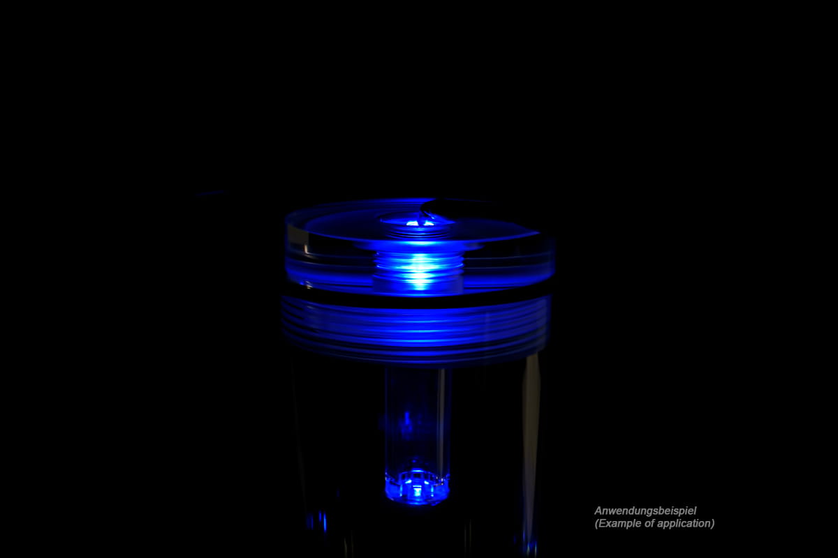 Die Beleuchtungsmodule bestehen aus Acrylglas und ermöglichen die Beleuchtung mit einer 5mm LED. Die Module lassen sich in alle 1/4" Öffnungen Schrauben. Sie finden Anwendung im Deckel und teilweise in den Sockeln der Behälter. Hiermit lassen sich einzigartige Beleuchtungseffekte erzeugen.