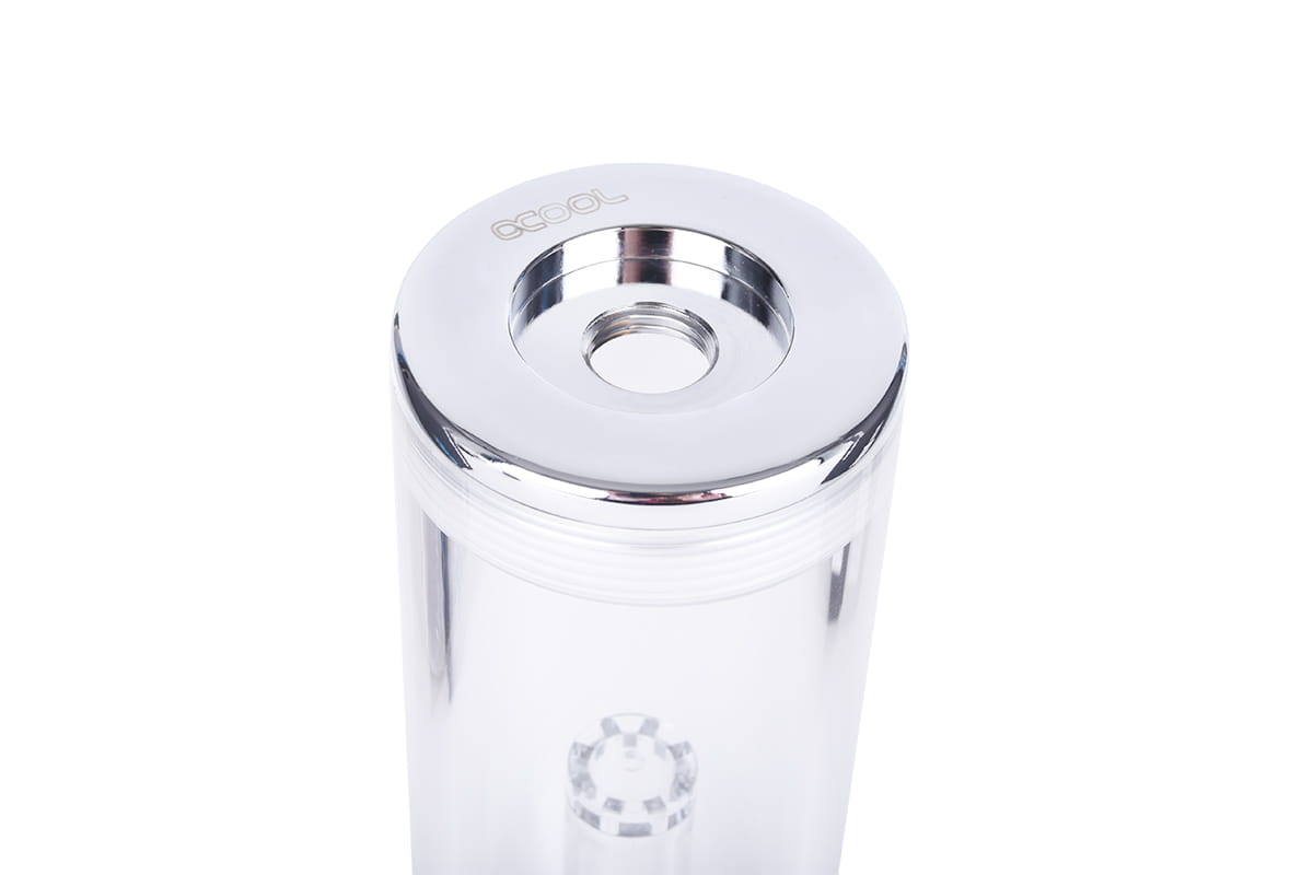 Dennoch bietet der Cape Corp Coolplex HF Metall ein weiteres optisches Highlight, dass aus der Alphacool Serie kaum noch wegzudenken ist. Den Lighttower Wassereffekt gibt es auch hier zu finden. Die seitlich aus dem Steigrohr austretenden Wasserstrahlen treffen auf das transparente Acrylglas des Ausgleichsbehälters und erzeugen so einen einzigartigen Sprudeleffekt, der sich je nach Wasserdurchsatz ändern kann. Wer den Effekt nicht nutzen möchte, kann den Ausgleichsbehälter einfach über das Steigrohr hinaus befüllen.