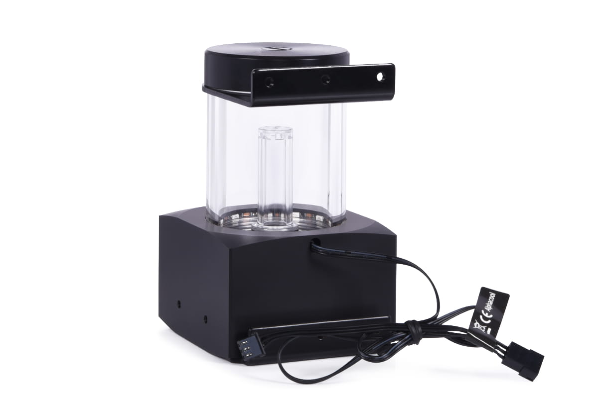 12 digital adressierbare RGB LEDs beleuchten die Aycrylröhre des Ausgleichsbehälters. Sie sind ringförmig am unteren Ende der Röhre im Übergang zum Pumpentop angebracht und sorgen für eine brillante Ausleuchtung des gesamten Ausgleichsbehälters. Im Zusammenspiel mit dem Lighttower Wassereffekt erreicht man ein ganz besonderes Ambiente. Die Digitale aRGB LED Beleuchtung wird über einen JST 3-Pin Stecker angeschlossen und kann mit einem Digital-RGB Controller (z.B. Alphacool Aurora Eiscontrol, Art.15360) oder einem Digital-RGB fähigem Mainboard gesteuert werden.