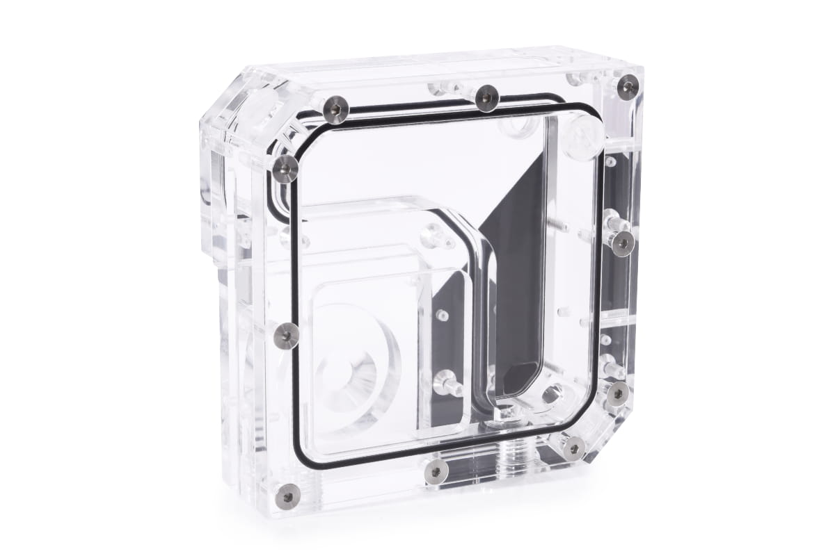 Der Rise Flat AGB verfügt über ein integriertes Pumpen-Top und ist zu allen originalen DDC Pumpen kompatibel. Sämtliche Schrauben zur Montage der Pumpe am Ausgleichsbehälter sind im Lieferumfang enthalten.