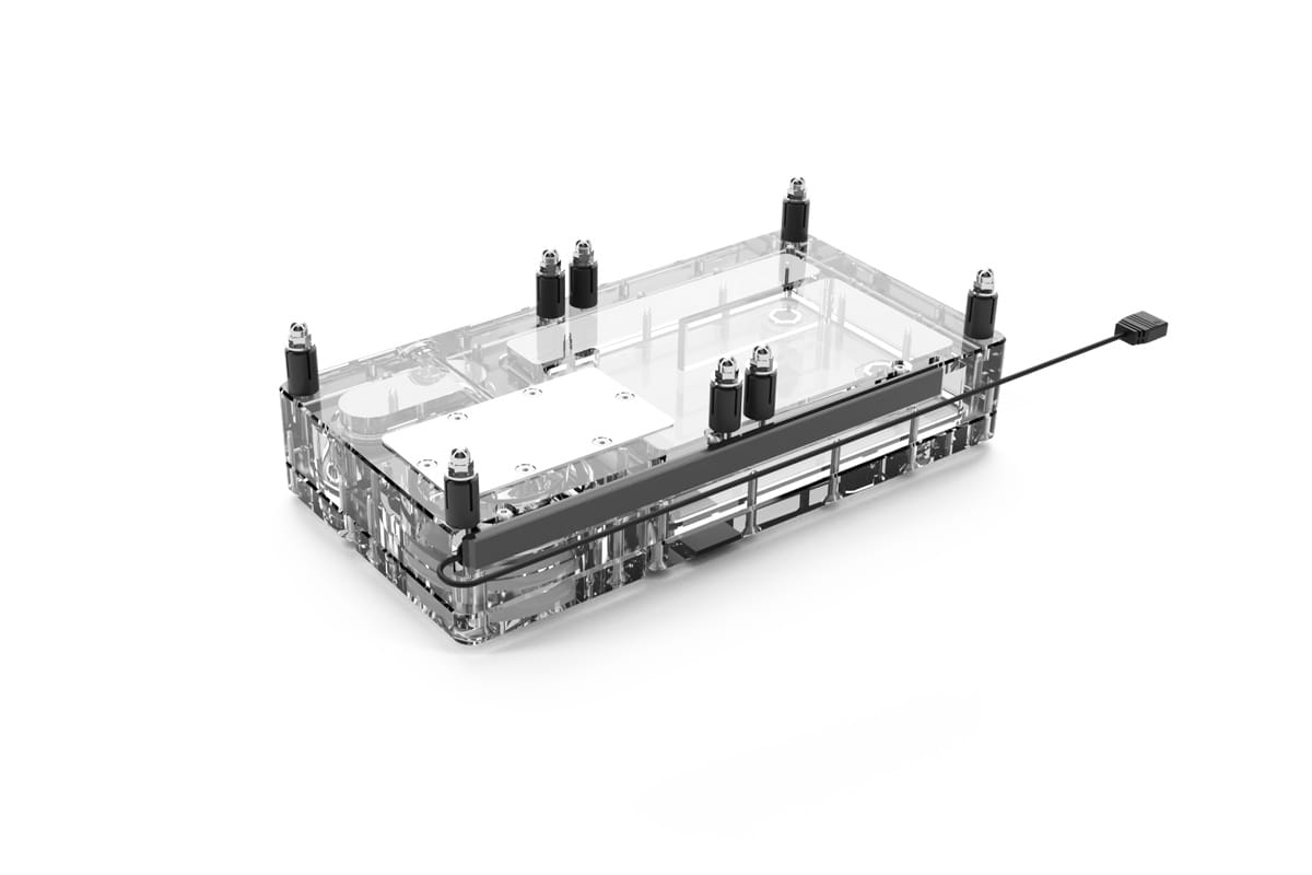 Alphacool's Core Flat Reservior wird aus hochwertigem Acrylglas gefertigt. Das erlaubt einen freien Blick auf die Kühlflüssigkeit und ein brillantes Farbspiel durch die verbaute digital adressierbare aRGB-Beleuchtung. Die Beleuchtung kann über einen digitalen aRGB-Header am Mainboard oder optional durch Alphacool's Aurora Eiscontrol aRGB Controller (Artikel-Nr.: 15360) gesteuert werden.