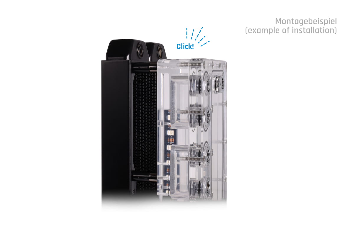 Das Core Push Mounting Kit bietet eine unkomplizierte und sichere Methode, um die Distro Plate von Alphacool an einem Radiator oder im PC Gehäuse zu montieren. Dazu werden die Metall-Pins an der Distro Plate festgeschraubt und die dazu passenden Hülsen am Radiator oder am PC Gehäuse angebracht. Im nächsten Montageschritt wird die Distro Plate werkzeuglos auf die Pins gesteckt. Das Alphacool Core Push Mounting System ermöglicht einen festen und stabilen Sitz der Distro Plate.