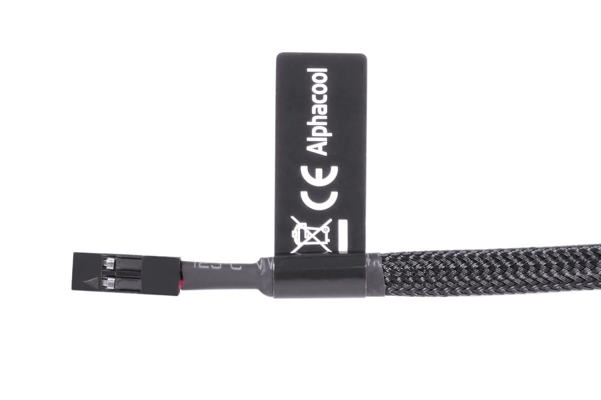 Als Sensor kommt ein klassischer NTC 10 kOhm Sensor zum Einsatz. Der auslesbare Temperaturbereich liegt zwischen -40 und 125°C. Das Kabel ist 40 cm lang und mündet in einen typischen 2-Pin Anschluss. Viele Mainboards bieten mittlerweile direkte Anschlussmöglichkeiten für derartige Sensoren. Prüfen Sie dazu bitte das Handbuch ihres Mainboards. Es gibt natürlich auch diverse externe Controller die einen Anschluss für den Sensor anbieten.