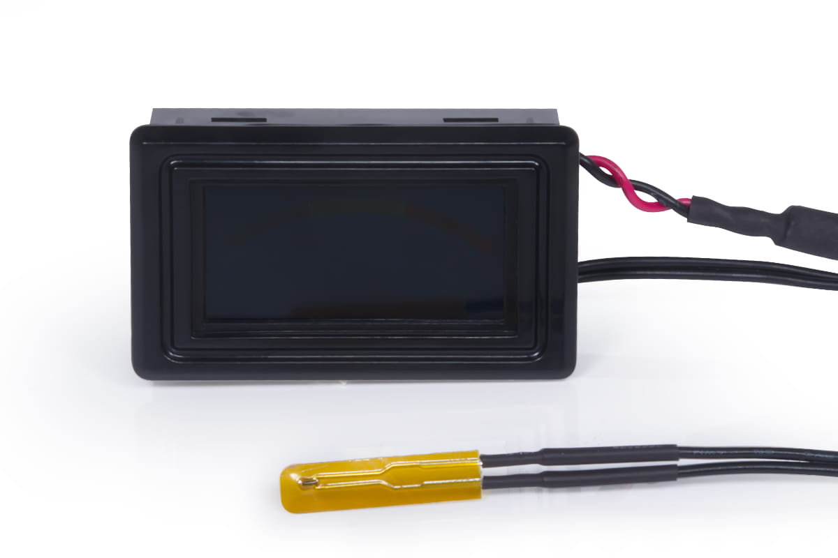 Als Sensor kommt ein klassischer NTC 10 kOhm Thermistor zum Einsatz. Das Kabel des Temperatursensors bietet mit ca. 100 cm Länge ausreichend Möglichkeit für ein komfortables Verlegen. Die Stromversorgung erfolgt über ein 55 cm langes Kabel mit je einem Male und Female 4-Pol-Molex-Anschluss. Der auslesbare Temperaturbereich liegt zwischen -50 und 110 °C mit einer möglichen Abweichung von 0,1 °C. Das Display verfügt über eine Farbskala mit der man jederzeit den Überblick über kritische Temperaturbereiche behält. Eine zusätzliche Software zum Auslesen der Temperaturbereiche wird nicht benötigt.