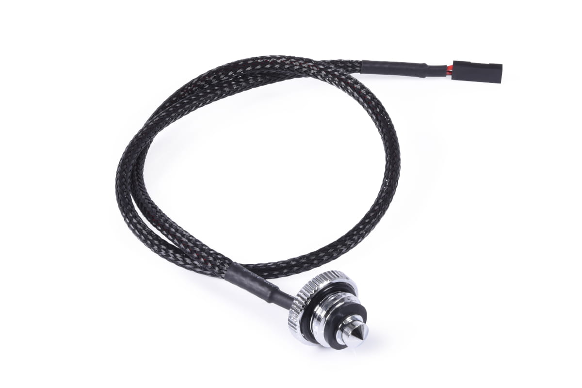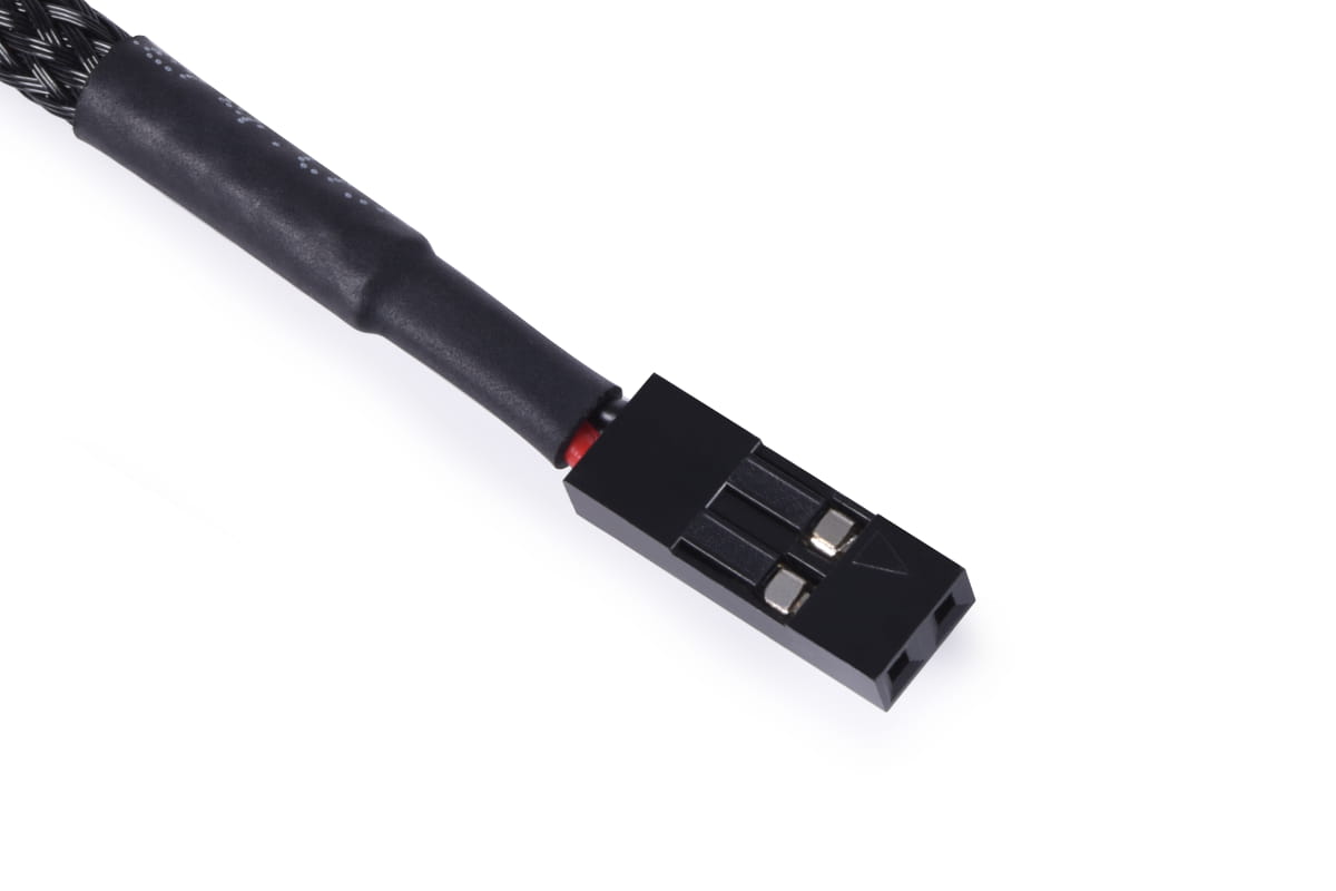 Als Sensor kommt ein klassischer NTC 10 kOhm Thermistor zum Einsatz. Der auslesbare Temperaturbereich liegt zwischen -40 und 125°C. Das Kabel ist 40 cm lang und mündet in einen typischen 2-Pin Anschluss. Viele Mainboards bieten mittlerweile direkte Anschlussmöglichkeiten für derartige Sensoren. Prüfen Sie dazu bitte das Handbuch ihres Mainboards. Es gibt natürlich auch diverse externe Controller die einen Anschluss für den Sensor anbieten.