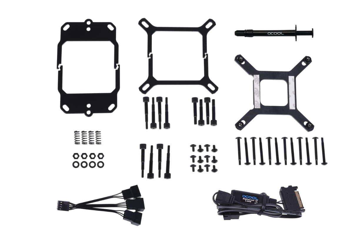 Die Lüfter werden ganz normal über einen 4-Pin PWM Stecker angesteuert. Damit man nicht alle Lüfter einzeln an das Mainboard anschließen muss, liegt ein entsprechend passendes Y-Kabel bei. Die RGB Beleuchtung wird über einen 3-Pin JST Stecker angeschlossen. Jedes Kabel hat zudem einen integrierten Y-Adapter wodurch die Lüfter sehr leicht zusammengeschlossen werden können. Ein 3-Pin 5V Adapter liegt der Verpackung bei. Damit kann man die Lüfter auch an jedes Mainboard mit entsprechendem Anschluss anschließen und ansteuern. Alternativ kann auch der beiliegende Digital RGB Controller verwendet werden. Die Pumpe der Eisbaer Aurora verwendet einen 3-Pin Molex Stecker. Dieser kann ebenfalls am Mainboard angeschlossen werden.