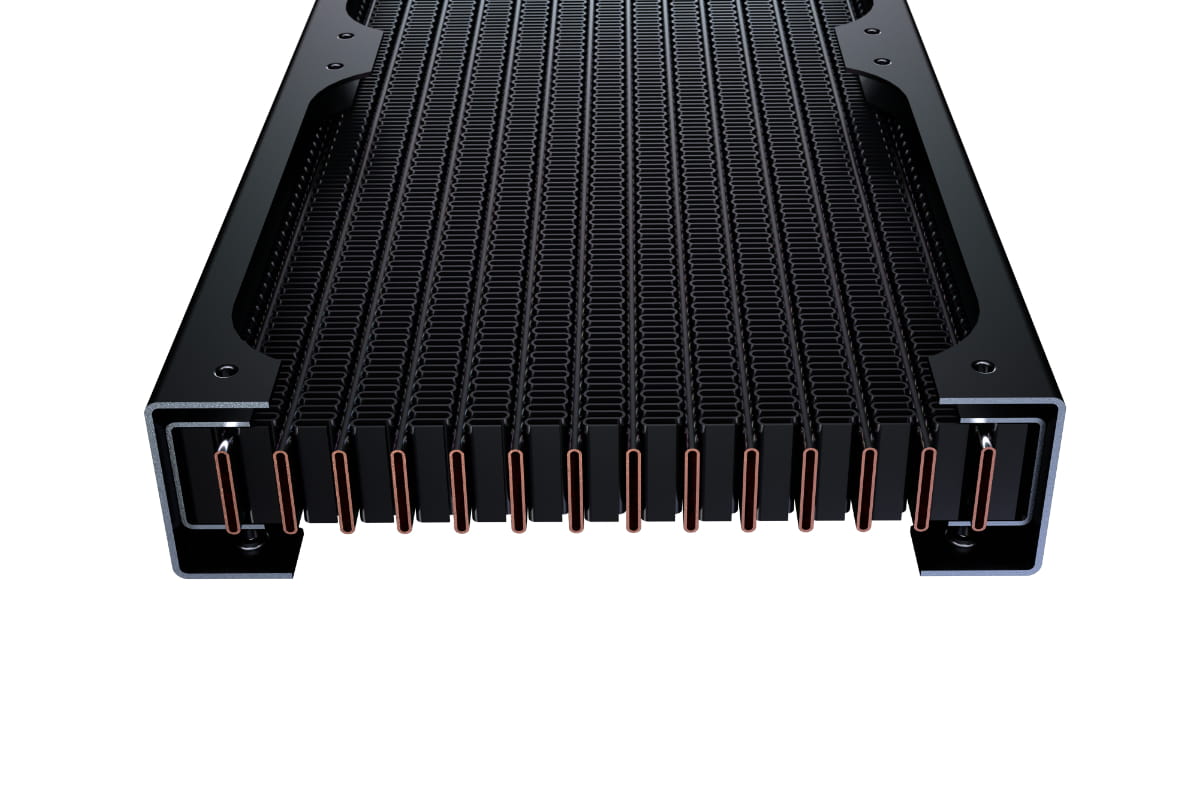 Der NexXxos ST30 HPE Radiator verwendet die gleichen Materialien wie die bisherigen NexXxos Modelle, geht aber technisch einen Schritt weiter. Durch den verdichteten inneren Aufbau, konnte die Anzahl an Wasserkanälen und Kupferlamellen erhöht werden. Damit ist ein größeres Wasservolumen im direkten Kontakt mit den Kühlfinnen und die Wärmeübertragung wird enorm verbessert. Durch die höhere Anzahl der Finnenreihen und deren Verkürzung wird zudem die Kühlfläche wesentlich effizienter ausgenutzt. Vergleichstests mit dem herkömmlichen NexXxos Radiator haben ergeben, dass bei Verwendung des HPE Radiators eine Leistungssteigerung von 4,5K möglich ist. Bei höherer Umgebungstemperatur und höherer Drehzahl der Lüfter steigt der Leistungsabstand zu den normalen NexXxoS Radiatoren sogar progressiv an und erreicht eine mögliche Leistungssteigerung von bis zu 6K.