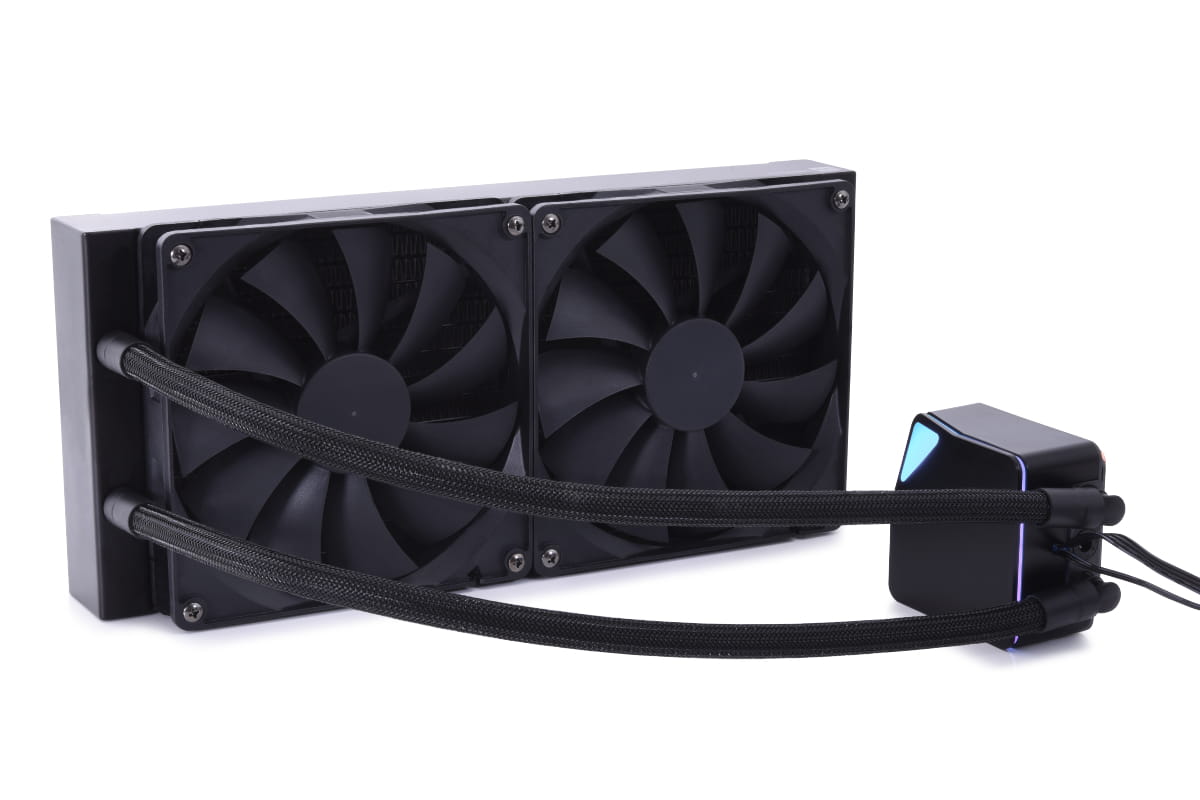 Die FEP Schläuche sind 40cm lang, gesleevt und sehr flexibel. Die drehbaren 360° Anschlüsse zum Kühler sowie zum Radiator sind fest verbaut und können nicht ausgetauscht werden. Die Kombination aus Schlauch und Anschluss erlaubt aber eine sehr variable Positionierung der AiO auch im engesten PC-Gehäuse.
