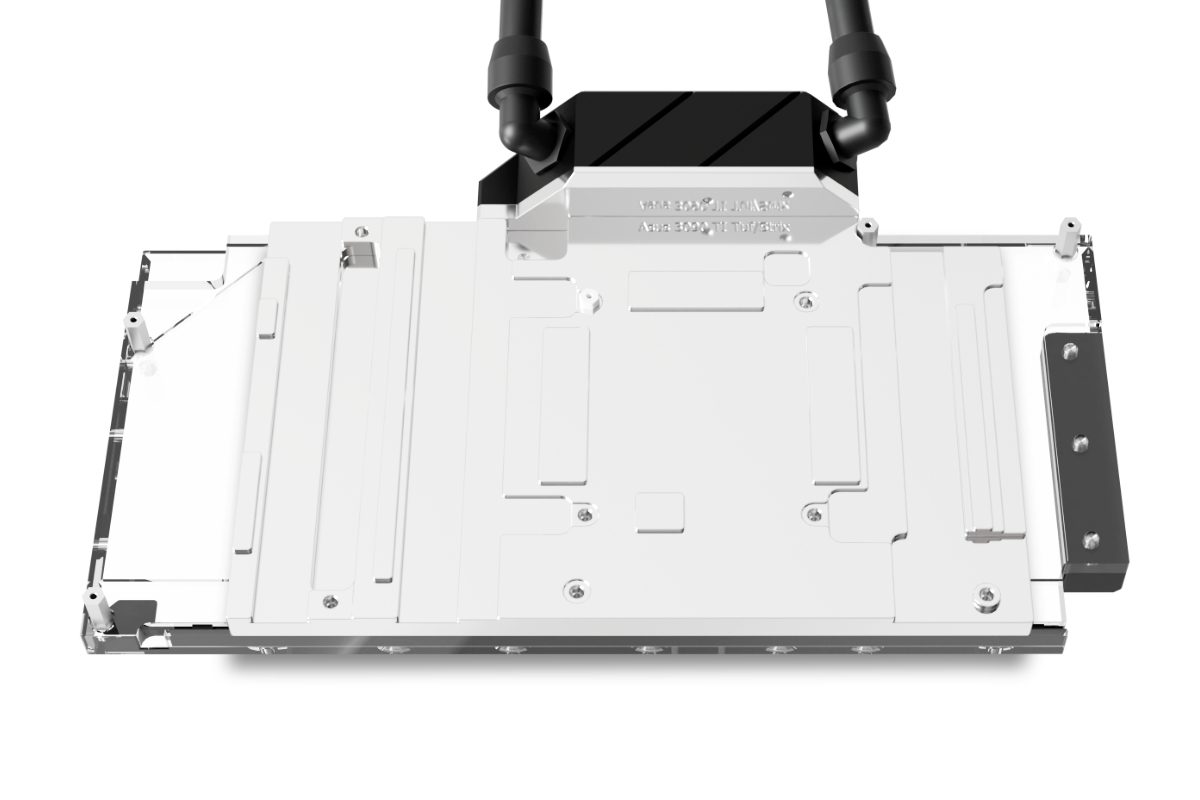 Der Eiswolf 2 Grafikkarten AIO Wasserkühler kühlt nicht nur die GPU mit Wasser sondern alle relevanten Bauteile die eine aktive Kühlung benötigen. Dazu gehören der Grafikspeicher, die Spannungswandler und gegeben falls noch weitere Bauteile die zwingend eine direkte Kühlung benötigen. Durch die Verwendung des Eisblock GPX Aurora Wasserkühlers als Basis, ist die Kühlleistung identisch mit der eines DIY Grafikkarten Wasserkühlers
