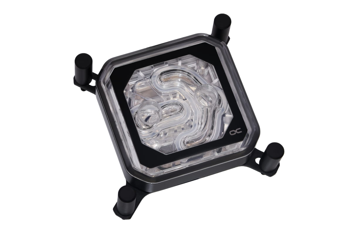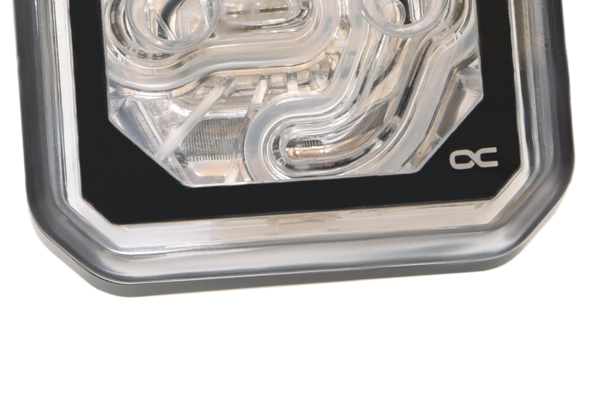 Der Alphacool Eisblock Aurora Edge wurde in einigen Punkten wesentlich zum Vorgänger Eisblock XPX verändert. Der untere Teil des Kühlers besteht vollständig aus Messing und nicht mehr aus Acryl oder transparentem Nylon. Dadurch verändert sich die gesamte Haptik und Qualität des Kühlers. Er liegt nicht nur schwerer in der Hand, sondern ist in jeder Hinsicht auch deutlich stabiler als die üblichen Acryl CPU Wasserkühler. Um sich optisch weiter vom normalen Eisblock XPX Aurora CPU-Wasserkühlers abzuheben, wurde der Zwischenboden des Kühlers komplett in Schwarz gehalten. Dadurch wird der optische Effekt des Wasserflusses nochmal hervorgehoben. Die Ecken des CPU-Kühlers sind eckiger gestaltet, wodurch sich der Kühler deutlich vom normalen Eisblock Aurora Acryl abhebt.