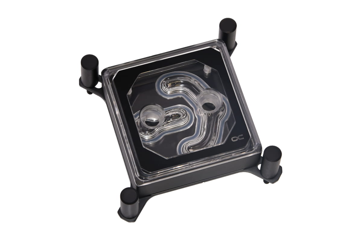 Der Alphacool Eisblock Aurora Edge wurde in einigen Punkten wesentlich zum Vorgänger Eisblock XPX verändert. Der untere Teil des Kühlers besteht vollständig aus Messing und nicht mehr aus Acryl oder transparentem Nylon. Dadurch verändert sich die gesamte Haptik und Qualität des Kühlers. Er liegt nicht nur schwerer in der Hand, sondern ist in jeder Hinsicht auch deutlich stabiler als die üblichen Acryl CPU Wasserkühler. Um sich optisch weiter vom normalen Eisblock XPX Aurora CPU-Wasserkühlers abzuheben, wurde der Zwischenboden des Kühlers komplett in Schwarz gehalten. Dadurch wird der optische Effekt des Wasserflusses nochmal hervorgehoben. Die Ecken des CPU-Kühlers sind eckiger gestaltet, wodurch sich der Kühler deutlich vom normalen Eisblock Aurora Acryl abhebt.