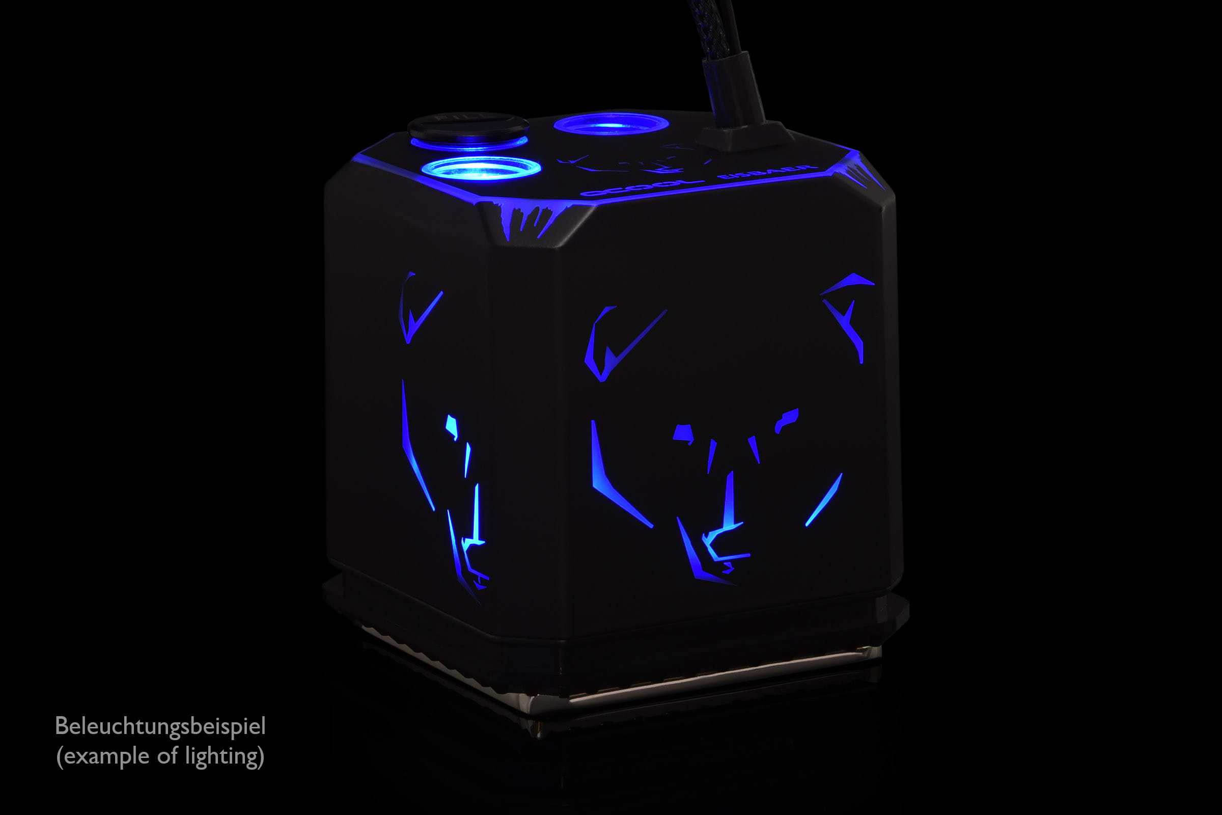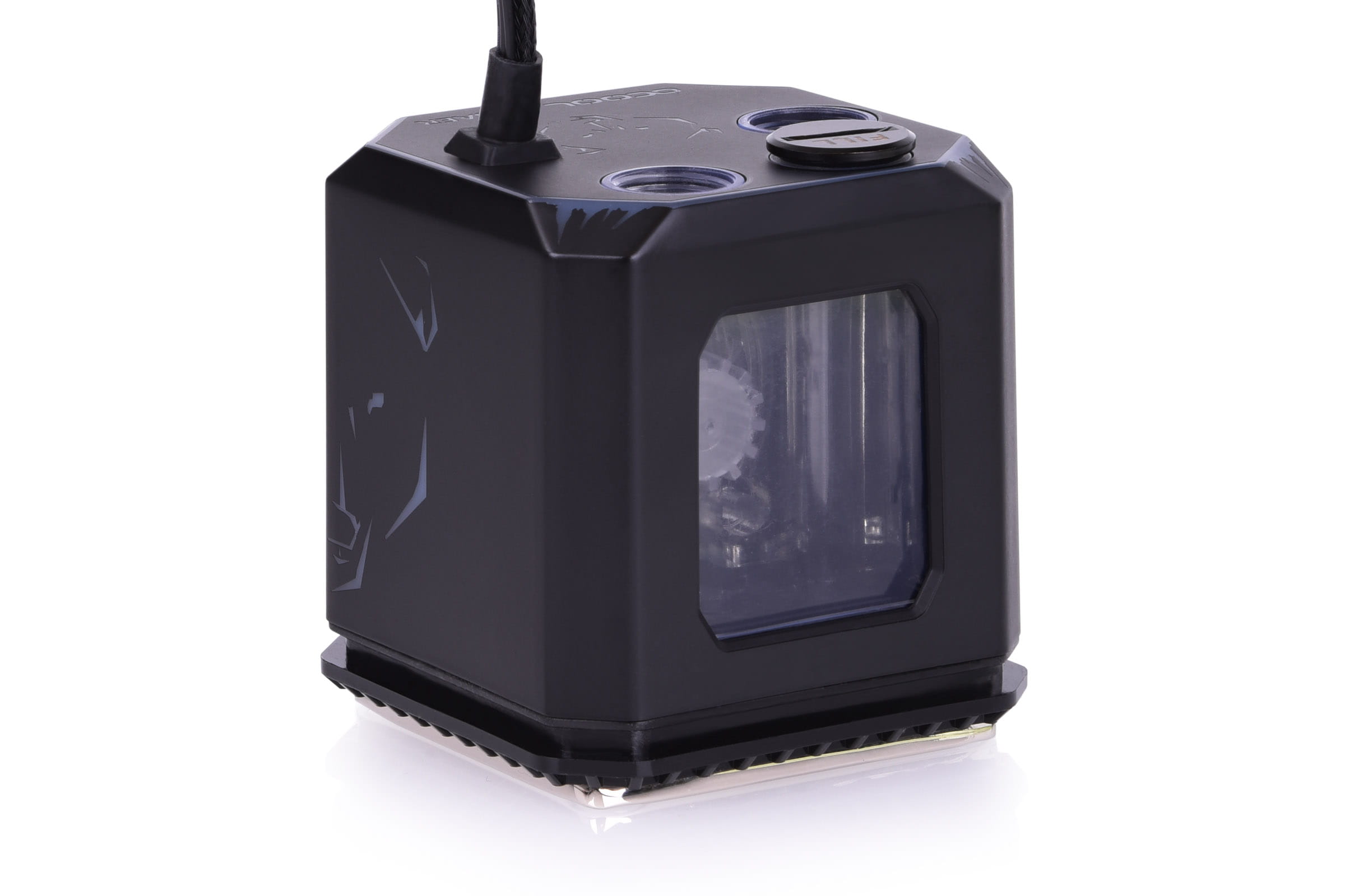 Die Basis der Pumpe ist die Alphacool DC-LT 2 Ceramic welche auch separat erhältlich ist. Die Pumpe ist leistungsstark genug um einen Kreislauf, bestehend aus einem Radiator, einem CPU Block und einem Grafikkarten Wasserkühler, zu betreiben. Dabei bleibt sie stets leise bis unhörbar. Der Kühlerboden besteht aus vernickeltem Kupfer und bietet eine herausragende Wärmeübertragung. Durch die feine Finnenstruktur des Kühlerbodens und dem optimierten Wasserfluss ist die Kühlleistung vergleichbar mit den besten DIY Wasserkühlern am Markt. Kompromisse im Bereich Leistung zugunsten von anderen Features wurden nicht eingegangen.
