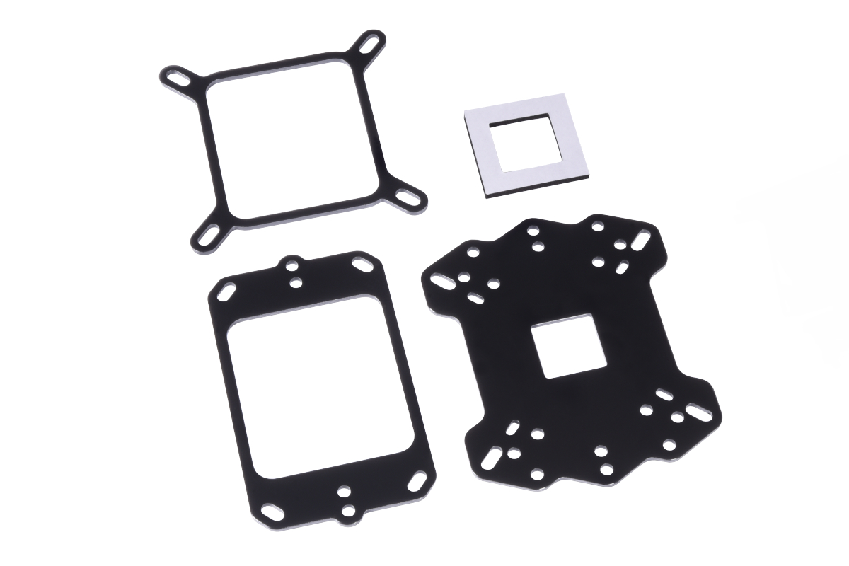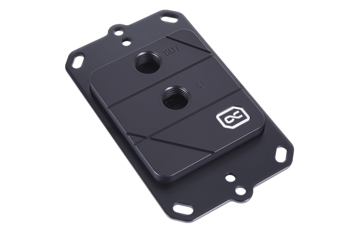 Der vernickelte Kupferkühlerboden besitzt eine Fläche von 56 x 56 mm mit Kreuz-Schlitzstruktur und lediglich 0,4 x 0,4 mm dicken Pins durch die das Wasser strömen kann. Aufgrund der extrem großen Kühlfläche kann das Wasser effektiv die Wärme vom Kühlerboden aufnehmen und abtransportieren. Die Pin-Fläche ist dabei rund 27,6 x 37,6 mm groß. Damit werden alle Mainstream-CPUs sauber abgedeckt was eine hohe Kühlleistung gewährleistet. Die neue mehrfach geschlitzte Düsenplatte wurde speziell für diesen Kühler entwickelt um ein perfektes Zusammenspiel aus Wasserverlauf und Anströmen der Bodenplatte zu erreichen. Erst das Zusammenspiel all dieser Kleinigkeiten ermöglicht die maximale Performance.