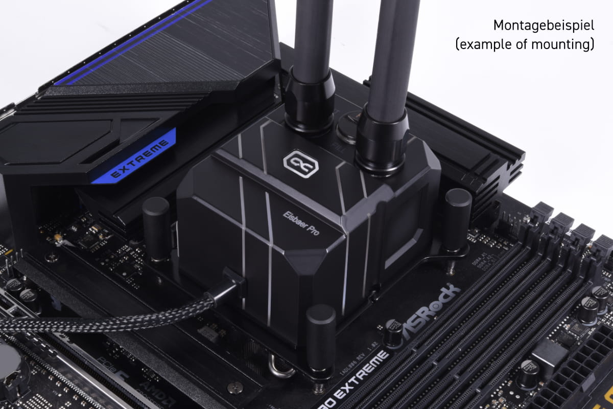 Der Eisbaer Pro ES (Solo) Kühler verwendet die sehr kompakte und kleine DC-LT 2 Pumpe. Sie bietet genug Leistung um noch weitere Komponenten wie GPU-Wasserkühler oder Radiator in den Wasserkreislauf einzubinden.