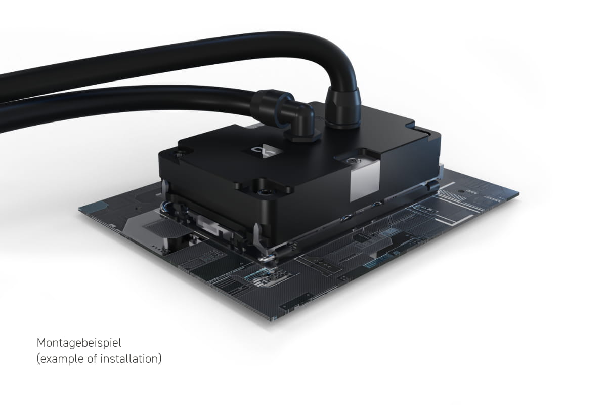 Der Alphacool ES Jet CPU Kühler wurde speziell für leistungsstarke Prozessoren auf Intel's Sockel LGA 4677 in Server und Workstation Systemen entwickelt. Mit der mitgelieferten Halterung unterstützt der Alphacool ES Jet CPU Kühler nun auch den SP5 Sockel von AMD. Neu ist, dass das Wasser erstmals über vier Düsen über den Kühlerboden verteilt wird. Mithilfe dieser Düsentechnik werden alle Kerne des Prozessors optimal abgedeckt und so effektiver und punktgenauer gekühlt. Dank des Wechsels von einer auf vier Düsen ist der ES Jet CPU Kühler in der Lage, eine Abwärme von bis zu 800 Watt zuverlässig abführen zu können.