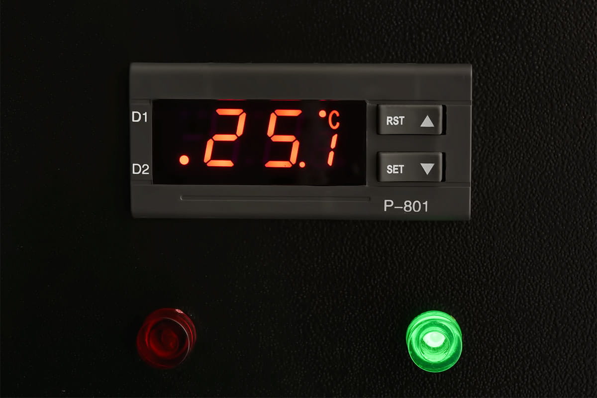 der Überspannungsschutz für den Kompressor und einen Alarm bei zu niedrigem Durchfluss oder zu hohe Temperaturen.