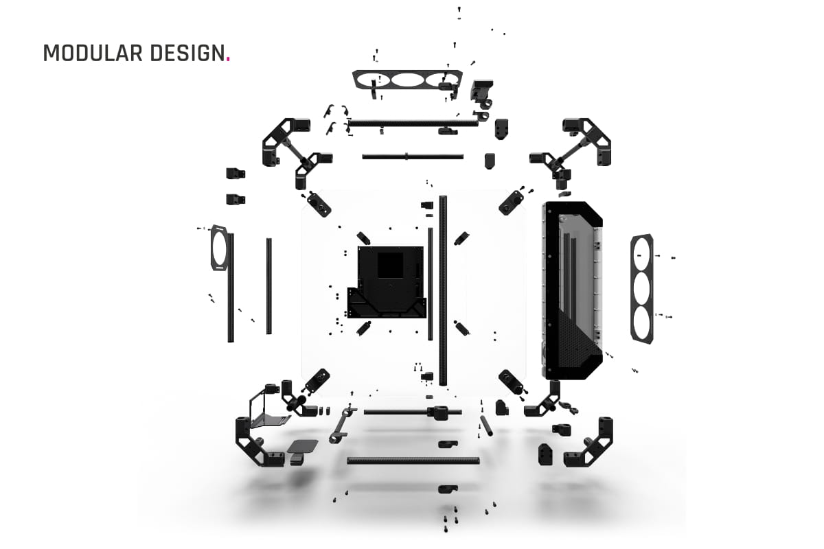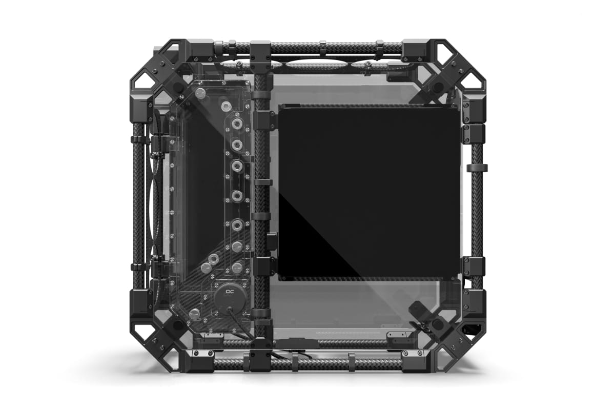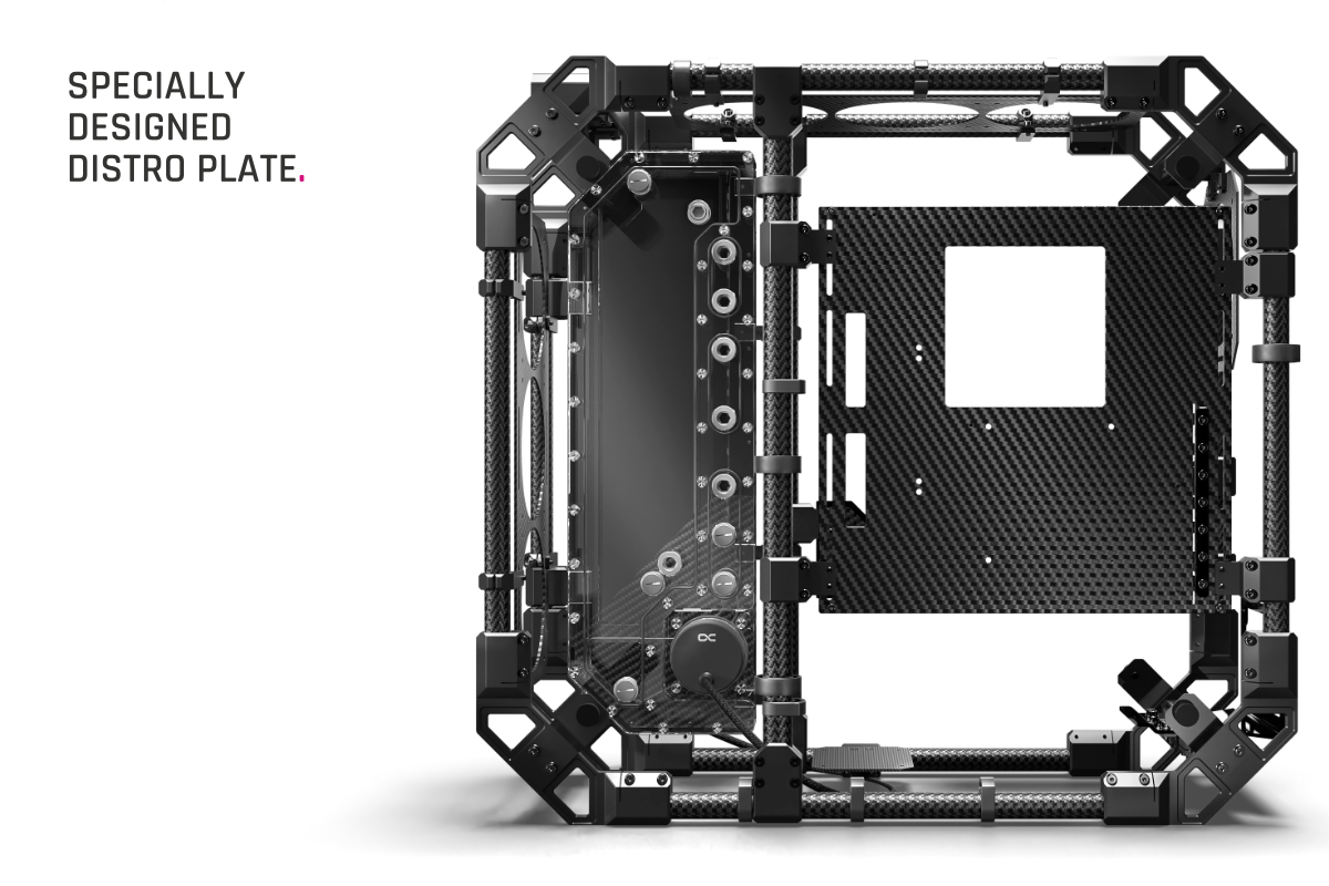 Grenzenlose Freiheit mit dem Alphacool Apex Pro Skeleton. Das aus Carbon-Stangen und CNC-gefrästen Aluminium-Verbindungsstücken gefertigte Gehäuse wurde speziell für die Anforderungen von Wasserkühlungssystemen entwickelt. Um der Kreativität keine Grenzen zu setzen, kann das Skeleton vollständig zerlegt und nach eigenen Wünschen individualisiert werden. Die mitgelieferte Distro Plate inklusive vormontierter VPP Apex Pumpe ist exklusiv für dieses Gehäuse designt und erlaubt zahlreiche Anschlussmöglichkeiten.