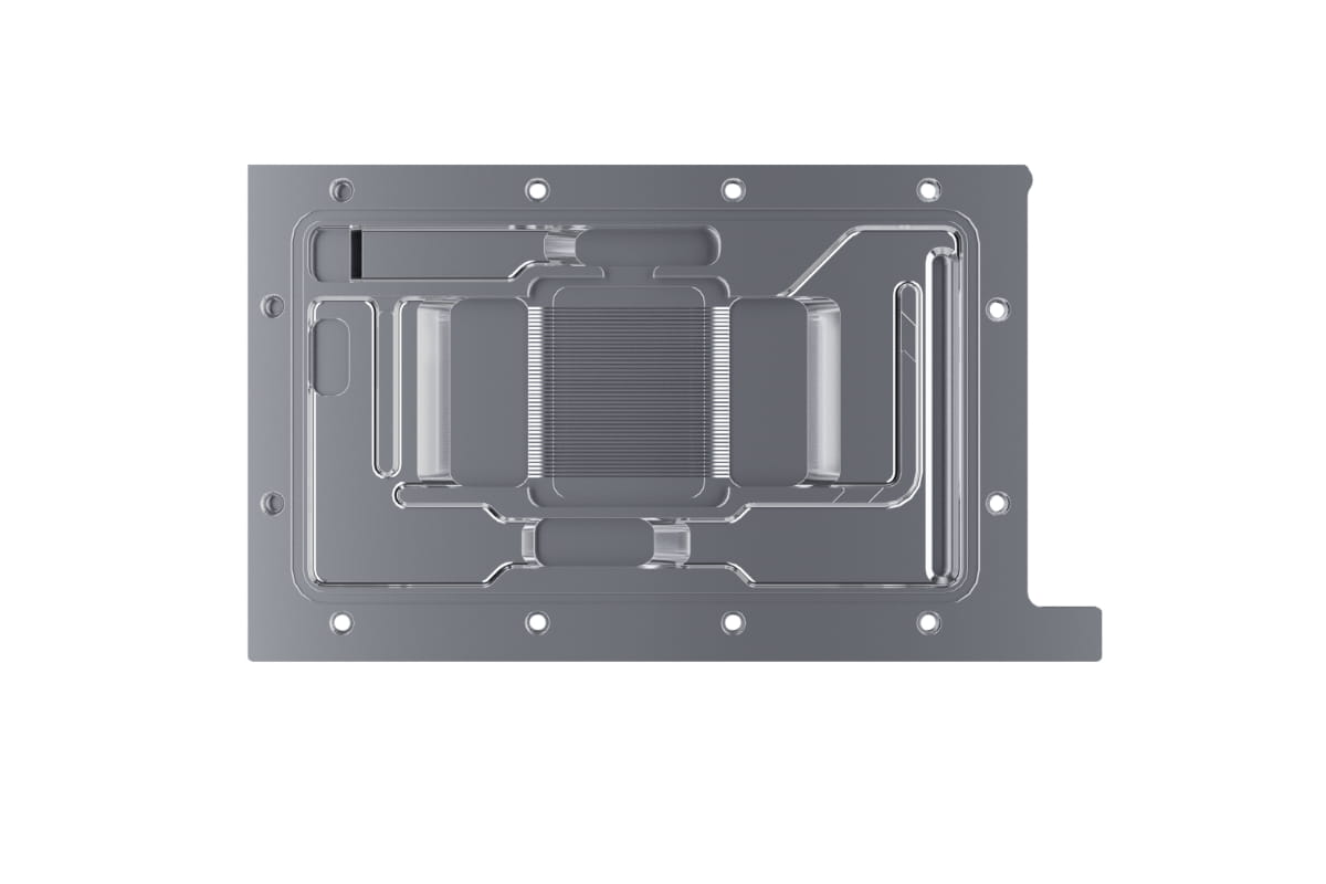 Alphacool gelingt es, den Kühler auf bestmögliche Weise nah an die zu kühlenden Bauteile zu positionieren. Dafür werden die verwendeten Wärmeleitpads auf eine Dicke vom 1mm reduziert. Die maximal mögliche Reduzierung der Stärke des Kupferblocks und die Optimierung des Wasserflusses innerhalb des Kühlers erlauben, dass alle wichtigen Bauteile wie GPU, Spannungswandler und VRAMs deutlich besser und effektiver vom Wasser gekühlt werden. Das alles sorgt für eine signifikante Steigerung der Kühlleistung.