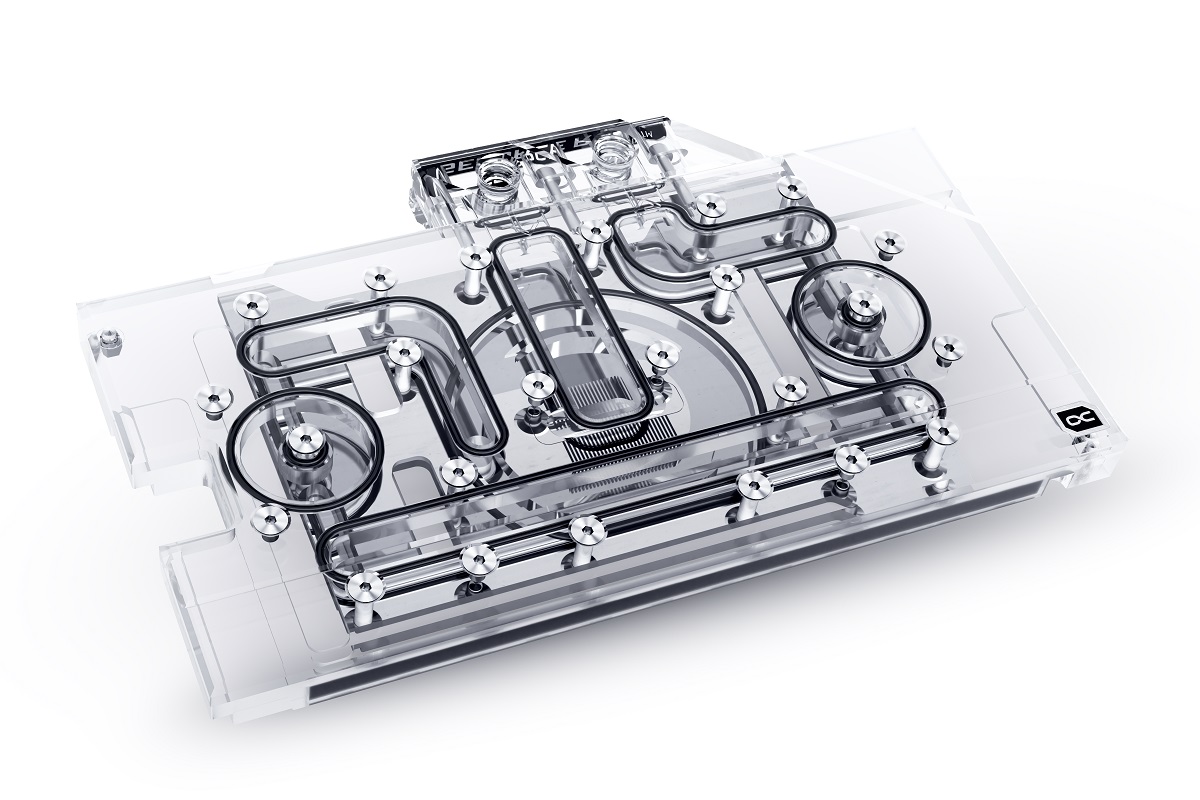 Bei der Entwicklung des Eisblock Aurora Acryl GPX-N RTX 3070 TUF/DUAL Grafikkarten-Wasserkühlers wurde natürlich auch Wert auf eine Leistungssteigerung gelegt. Im ersten Schritt wurde der Kühler näher an die einzelnen Bauteile gebracht, indem man die Wärmeleitpads auf eine Dicke von 1 mm reduziert hat. Im zweiten Schritt wurde der vernickelte Kupferblock ebenfalls dünner gestaltet. Statt bisher 7 mm ist er nur noch 5,5 mm dick. Der Wasserfluss wurde innerhalb des Kühlers ebenfalls optimiert. Alle wichtigen Bauteile wie die Spannungswandler und der RAM werden nun deutlich besser und effektiver vom Wasser gekühlt. Das alles sorgt für eine signifikante Steigerung der Kühlleistung.