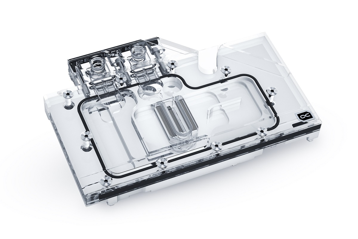 Bei der Entwicklung des Eisblock Aurora Acryl GPX Grafikkarten-Wasserkühlers wurde natürlich Wert auf eine Leistungssteigerung gelegt. Im ersten Schritt wurde der Kühler näher an die einzelnen Bauteile gebracht, indem man die Wärmeleitpads in ihrer Dicke reduziert hat. Im zweiten Schritt wurde der vernickelte Kupferblock ebenfalls dünner gestaltet. Schritt 3 beinhaltet die ständige Optimierung des Wasserflusses innerhalb des Kühlers. Ergebnis: Alle wichtigen Bauteile wie Spannungswandler und RAM werden deutlich besser und effektiver vom Wasser gekühlt und die Kühlleistung steigert sich signifikant.