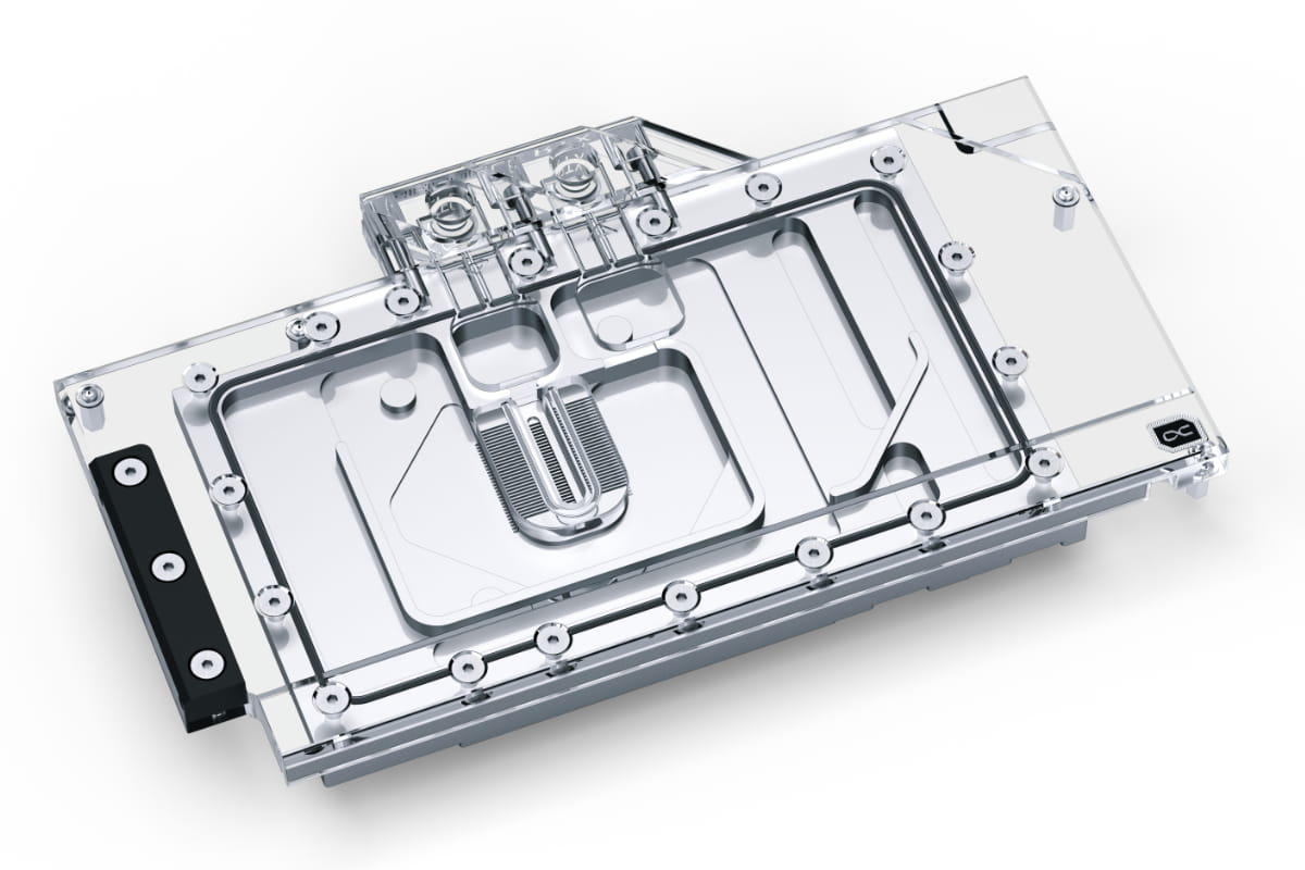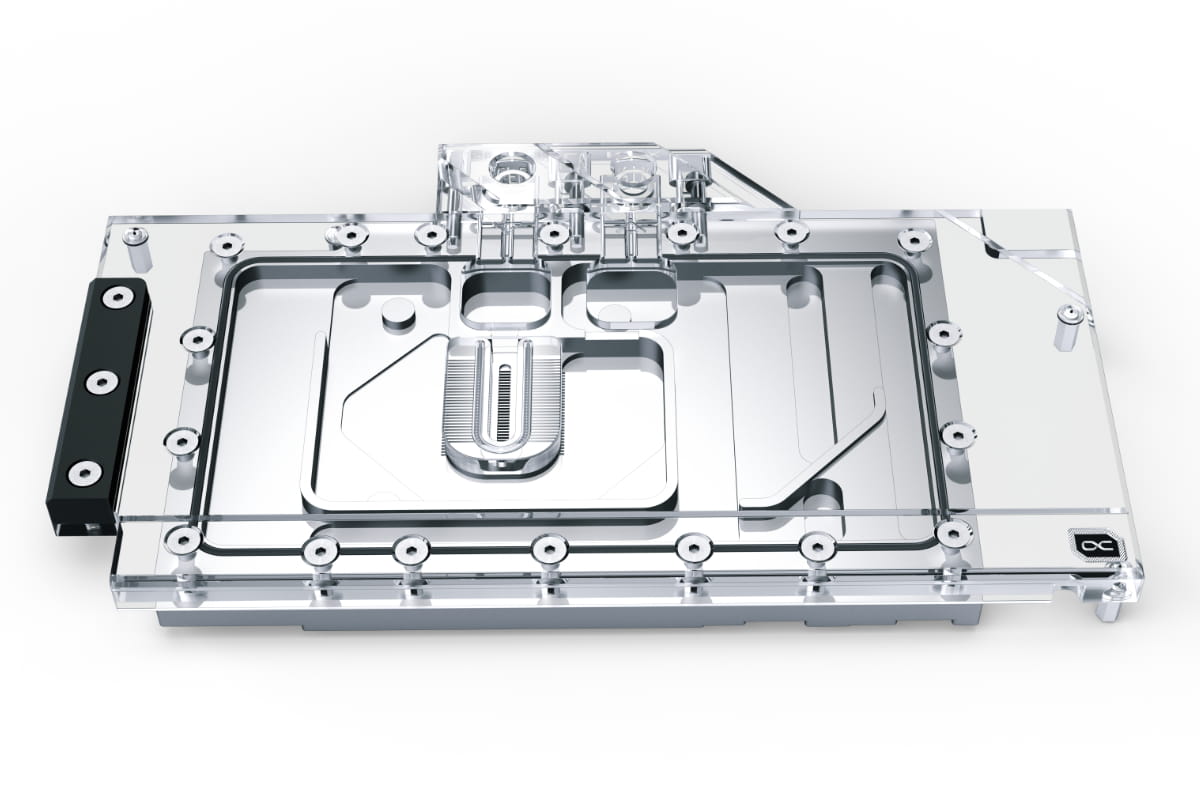 Bei der Entwicklung des Eisblock Aurora Acryl GPX Grafikkarten-Wasserkühlers wurde natürlich Wert auf eine Leistungssteigerung gelegt. Im ersten Schritt wurde der Kühler näher an die einzelnen Bauteile gebracht, indem man die Wärmeleitpads in ihrer Dicke reduziert hat. Im zweiten Schritt wurde der vernickelte Kupferblock ebenfalls dünner gestaltet. Schritt 3 beinhaltet die ständige Optimierung des Wasserflusses innerhalb des Kühlers. Ergebnis: Alle wichtigen Bauteile wie Spannungswandler und RAM werden deutlich besser und effektiver vom Wasser gekühlt und die Kühlleistung steigert sich signifikant.