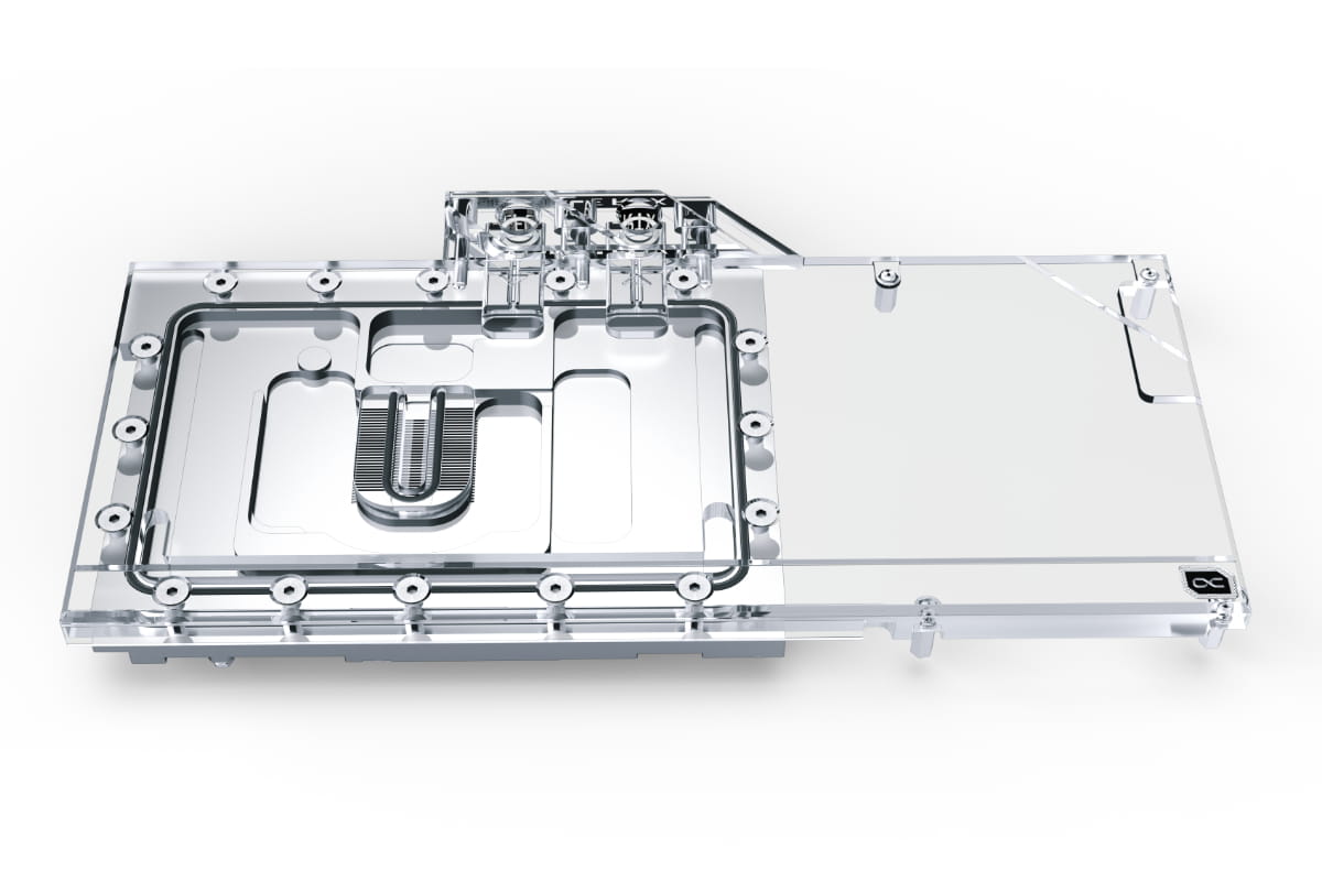 Bei der Entwicklung des Eisblock Aurora Acryl GPX Grafikkarten-Wasserkühlers wurde natürlich Wert auf eine Leistungssteigerung gelegt. Im ersten Schritt wurde der Kühler näher an die einzelnen Bauteile gebracht, indem man die Wärmeleitpads in ihrer Dicke reduziert hat. Im zweiten Schritt wurde der vernickelte Kupferblock ebenfalls dünner gestaltet. Schritt 3 beinhaltet die ständige Optimierung des Wasserflusses innerhalb des Kühlers. Ergebnis: Alle wichtigen Bauteile wie Spannungswandler und RAM werden deutlich besser und effektiver vom Wasser gekühlt und die Kühlleistung steigert sich signifikant.