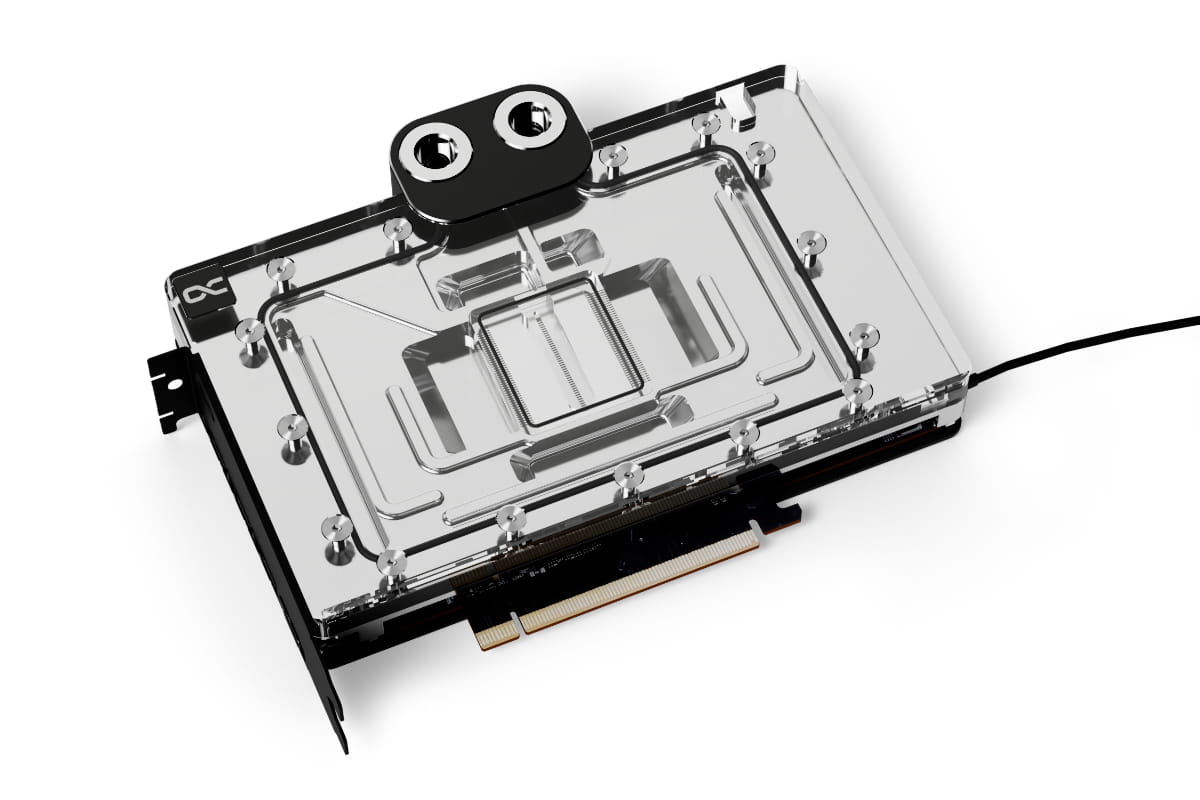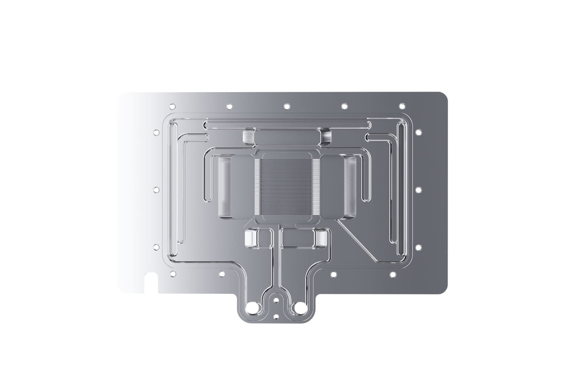 Die technische Weiterentwicklung zeigt sich beim Wasserzulauf zur Düsenplatte sowie bei der Optimierung der Jetplate selbst. Diese wurde komplett neu gestaltet auf Basis von vielen Simulationen und praktischen Tests in Zusammenarbeit mit Boardpartnern. Die Finnendicke und Abstände wurden verändert, die Kühlfläche vergrößert und der Wasserfluss auf die Kernkomponenten mit der größten Wärmeabgabe optimiert. Die beiliegenden speziellen Soft Wärmeleitpads mit bis zu 7 W/mK passen sich perfekt selbst kleinsten Toleranzen an.