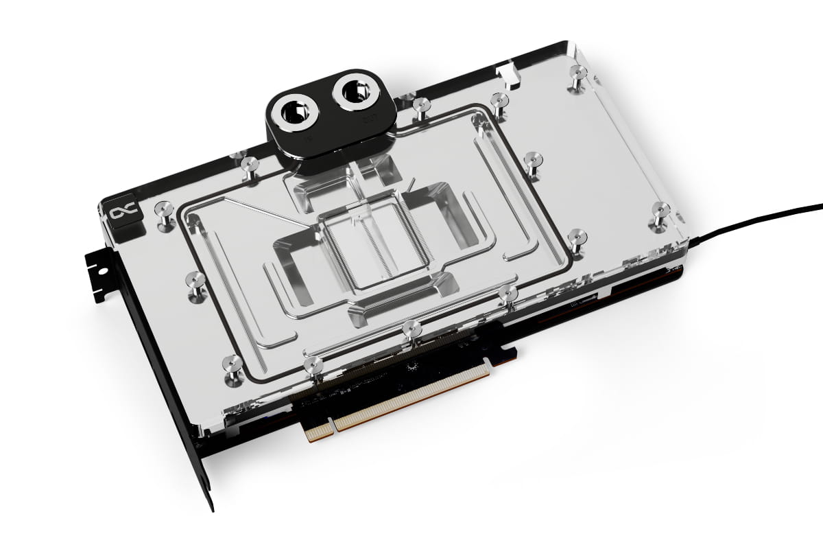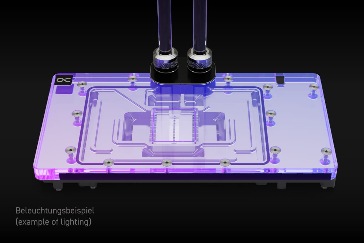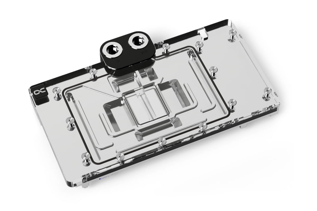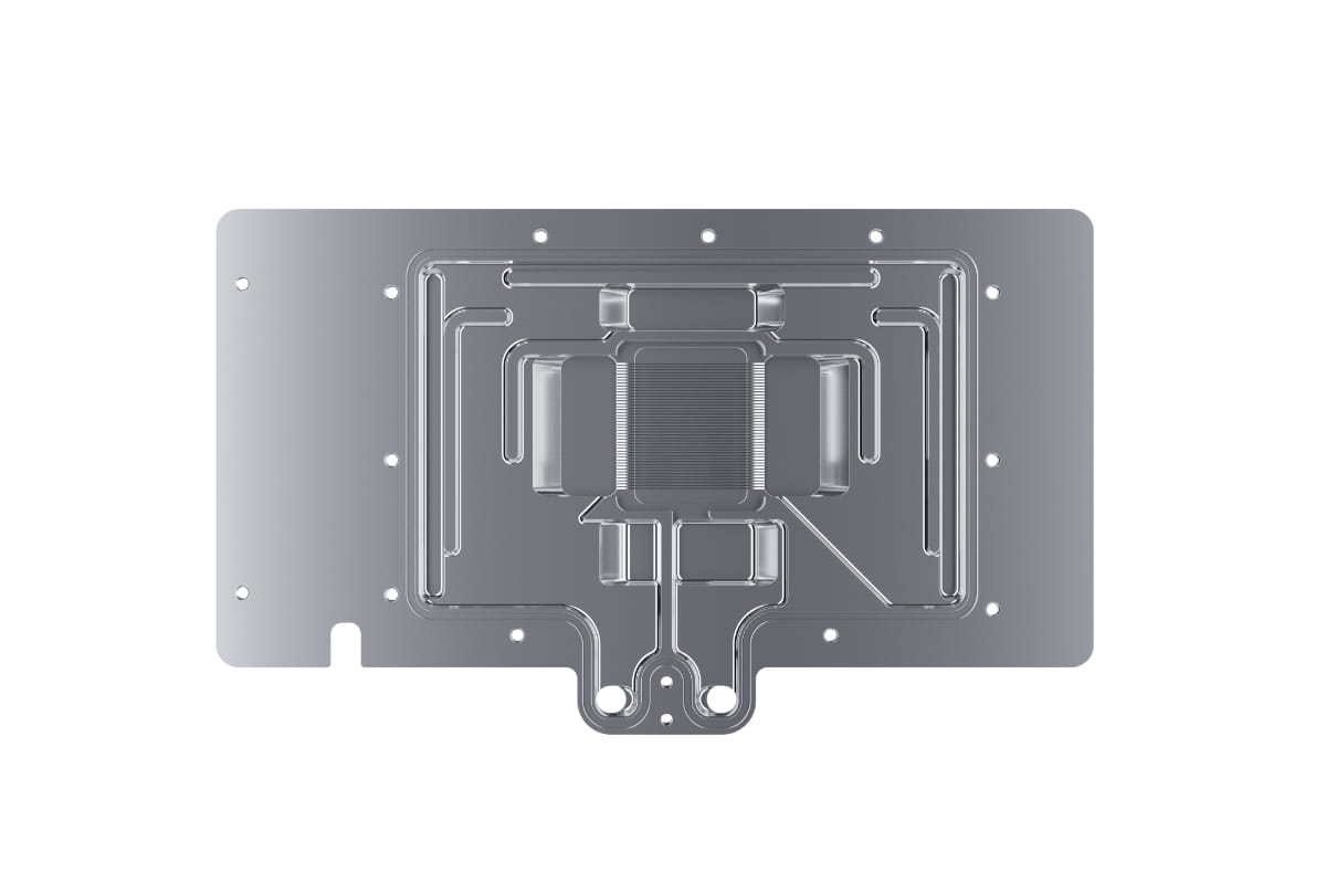 Die technische Weiterentwicklung zeigt sich beim Wasserzulauf zur Düsenplatte sowie bei der Optimierung der Jetplate selbst. Diese wurde komplett neu gestaltet auf Basis von vielen Simulationen und praktischen Tests in Zusammenarbeit mit Boardpartnern. Die Finnendicke und Abstände wurden verändert, die Kühlfläche vergrößert und der Wasserfluss auf die Kernkomponenten mit der größten Wärmeabgabe optimiert. Die beiliegenden speziellen Soft Wärmeleitpads mit bis zu 7 W/mK passen sich perfekt selbst kleinsten Toleranzen an.