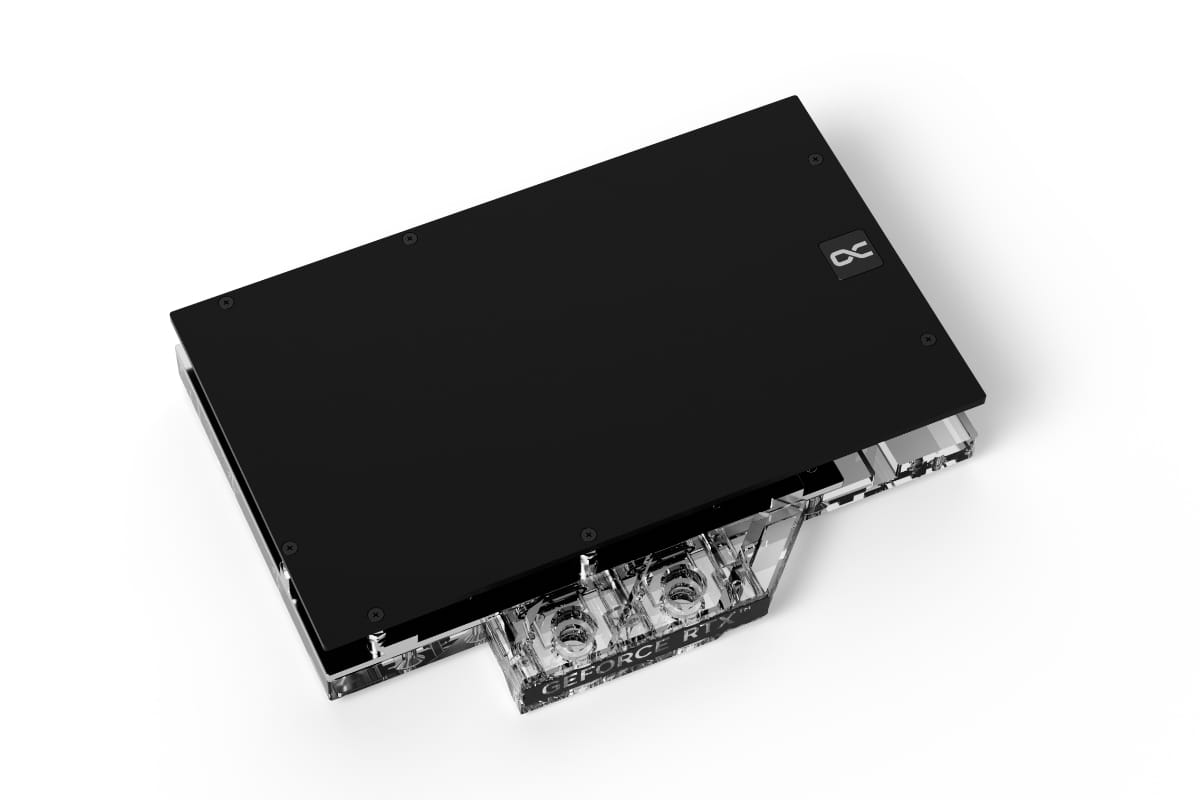 Das Aurora Design der Geforce RTX 4XXX Eisblock Generation ist optisch ruhiger und schlichter. Nur ein O-Ring umläuft den gesamten Kühler. Die Konstruktion rund um die Kühlfinnen und der Jetplate sorgt für eine klarere Optik. Die Beleuchtung der digital adressierbaren RGB-LEDs wird dank der Verchromung noch besser im Kühler verteilt. Das Terminal entspricht in seiner Formgebung dem klassischen Aurora Design.