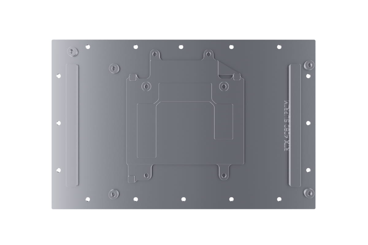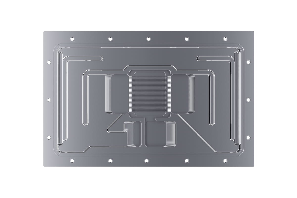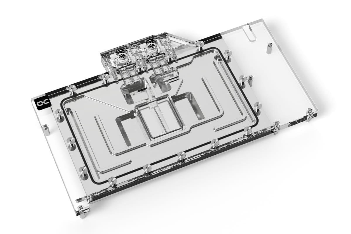 Die Finnenstruktur dieser Eisblock Kühlergeneration wurde gemeinsam mit Nvidia-Boardpartnern entwickelt. Die Finnendicke beträgt 0.4 mm, der Abstand der Kühlfinnen zueinander 0,4 mm. Das gewährleistet einen sehr guten Wasserdurchfluss bei gleichzeitiger Erhöhung der möglichen Kühlfläche. Die Düsenplatte verfügt über ein überarbeitetes Inlay, dass den Wasserdruck besser auf die Finnen verteilt und die Wärmeaufnahme optimiert. Der angepasste Wasserzufluss verhilft dem Wasser zu einem besseren Einströmwinkel.