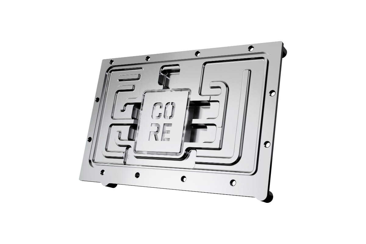 Die optische Gestaltung des GPU-Wasserkühlers wurde nur geringfügig verändert. Ein besonderes Highlight ist das neu hinzugekommene Core-Emblem über der Jetplate, dass die Zugehörigkeit zur Core-Serie unterstreicht und das Design visuell aufwertet. Die Serie setzt weiterhin auf hochwertige Messinganschlüsse, die optimale Qualität und Sicherheit garantieren. Die speziell angepasste Aluminium-Backplate bedeckt die komplette Rückseite des Kupferkühlers und sorgt für eine klare und einheitliche Optik. Das Acryl, in Kombination mit der aRGB-Beleuchtung, ermöglicht eine gleichmäßige und beeindruckende Beleuchtung des gesamten Kühlers.