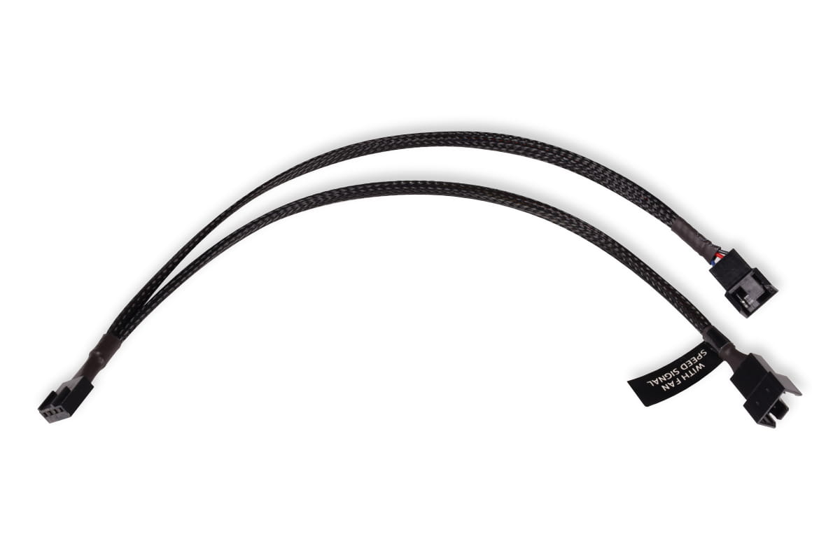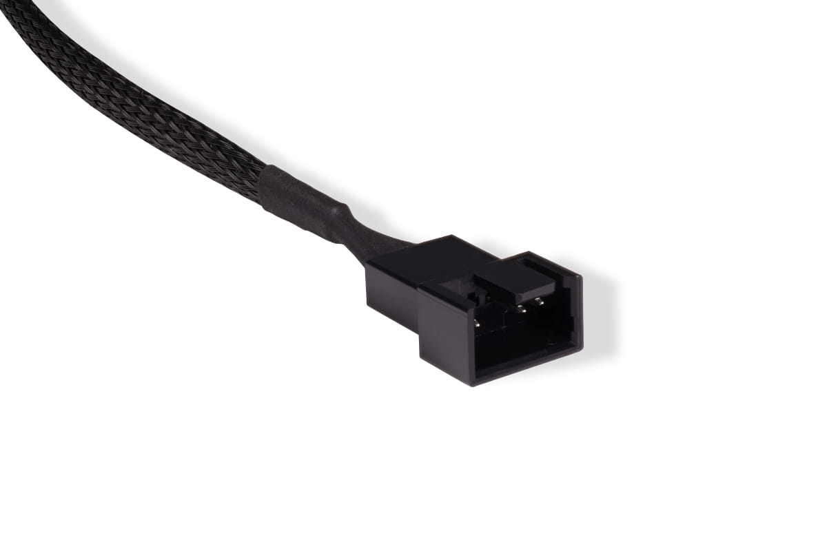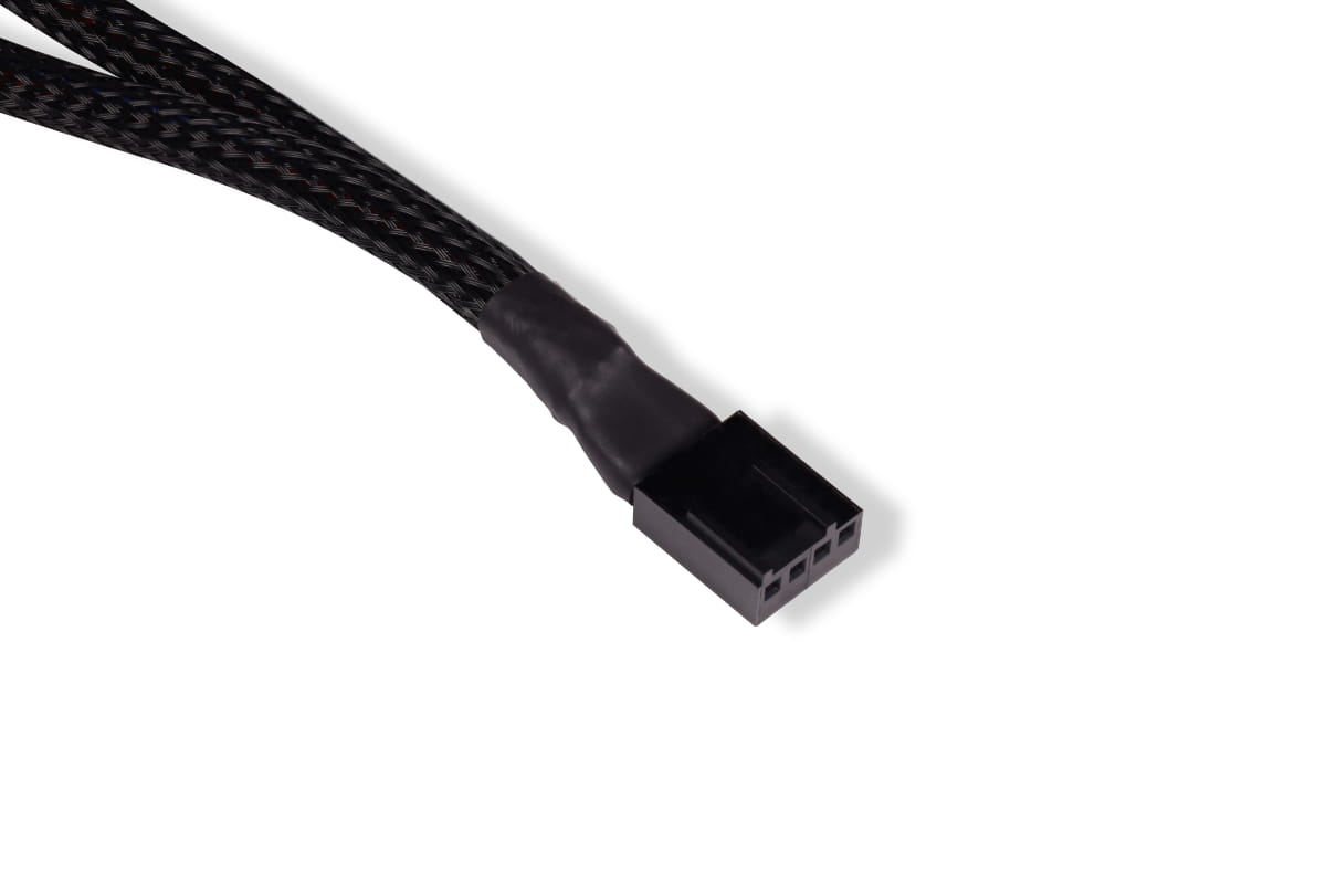 Gesleevtes 4-Pin auf 2x 4-Pin Y-Splitter Verteilerkabel. Verteilt Stromversorgung und PWM Signal auf mehrere Lüfteranschlüsse. Das Sleeving bietet zusätzlichen Schutz, Stabilität und eine längere Lebensdauer.