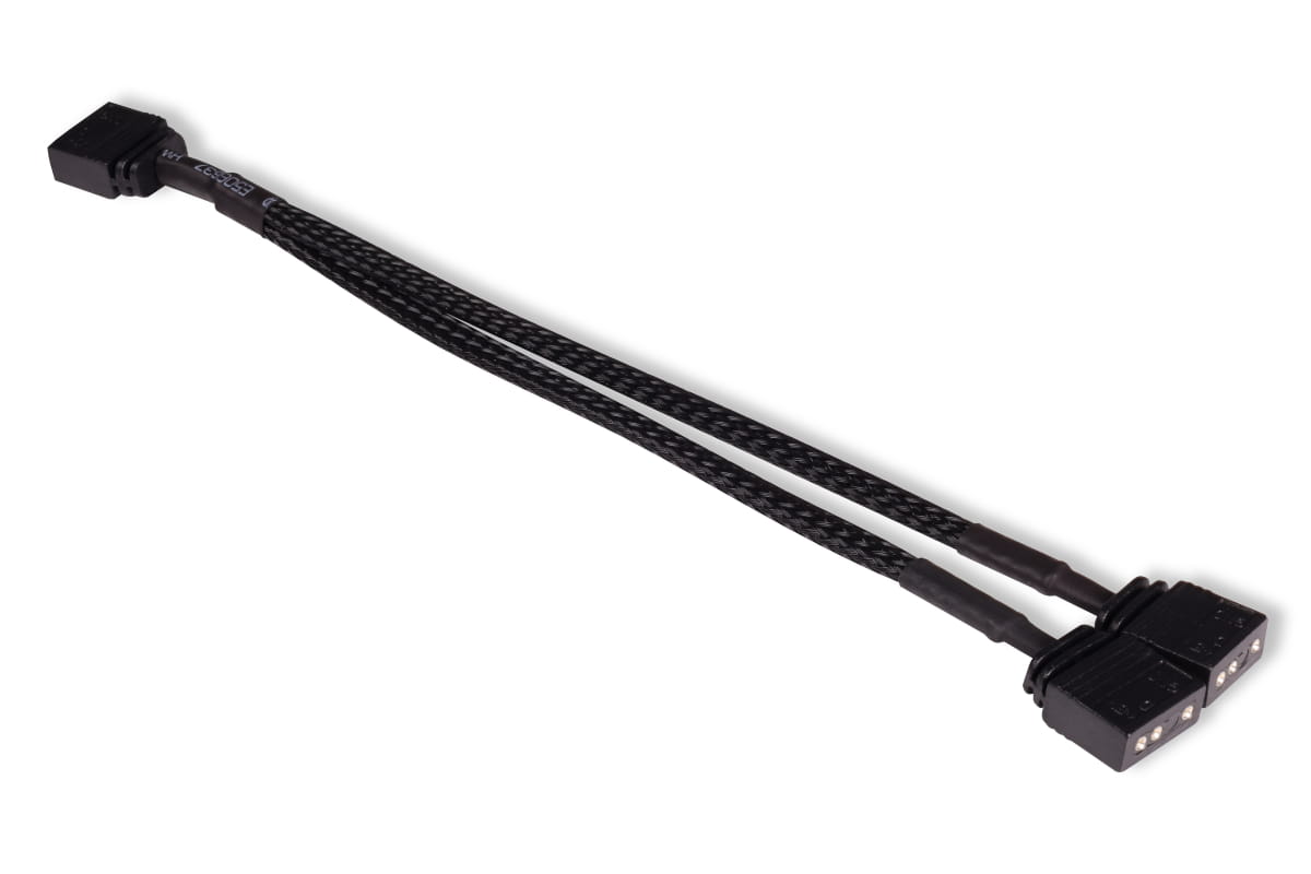 Ein hochwertig gesleevtes aRGB 3-Pin auf 2x 3-Pin Y-Splitter Kabel. Kompatibel zu allen Alphacool aRGB Produkten sowie den meisten Mainboards und aRGB-Controllern. Mit diesem Y-Splitter können mehrere aRGB Elemente zusammengeführt werden.